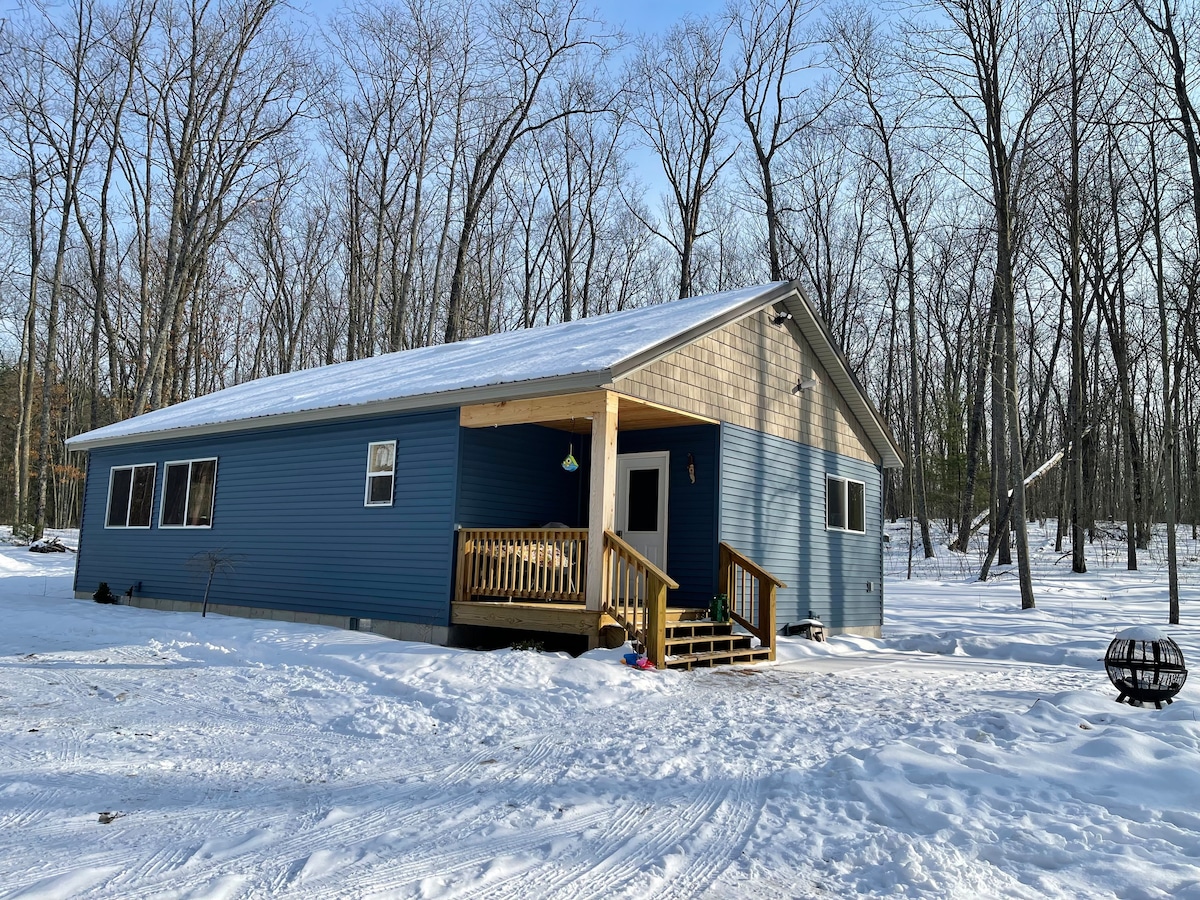 Við erum nú með ÞRÁÐLAUST NET! Þessi kofi hefur verið endurbyggður að fullu og ef þú ert nýr gestur eða gestur sem kemur aftur teljum við að þú munir falla fyrir honum! Við höfum bætt við svefnherbergi og stærra baðherbergi án þess að missa sjarmann sem allir fyrri gestir okkar voru hrifnir af! Ef þú elskar útivist skaltu vera hér!. Stígðu út um útidyrnar inn í hinn fallega Manistee-þjóðskóg. Á hverju tímabili er hægt að njóta friðsæls skógarins!