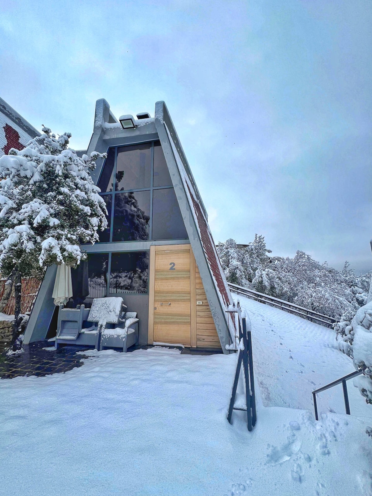 Notalegt, einkatréhús með útisundlaug, upphitaðri heitum potti innandyra, víðáttumiklu útsýni og snjallskjávarpa með Netflix. Inniheldur king-size rúm, fullbúið baðherbergi, eldhúskrók, grill, eldstæði, hengirúm, borðspil og þráðlaust net. Nýjasta af fjórum einstökum trjáhúsum SEVENOAKS, byggð á sama landi — fullkomin fyrir pör eða vini sem bóka saman. Morgunverður, vín-/ostafat og sendingarþjónusta í boði. Friðsælt frí í náttúrunni, aðeins 40 mín frá Beirút.