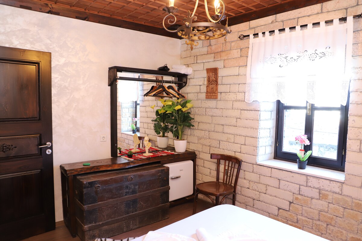 Verið velkomin í Stone House – hefðbundið heimili byggt af föður okkar, færum steinmúr, eftir 20 ár erlendis. Þetta friðsæla afdrep er umkringt náttúrunni og býður upp á ekta albanskan arkitektúr, hlýlegar innréttingar og heimagerðar máltíðir á fjölskylduveitingastaðnum okkar, „Tradicional“. Fullkomið fyrir pör, fjölskyldur og menningarferðamenn sem vilja sanna albanska gestrisni, staðbundna rétti og gistingu sem er full af sögum.