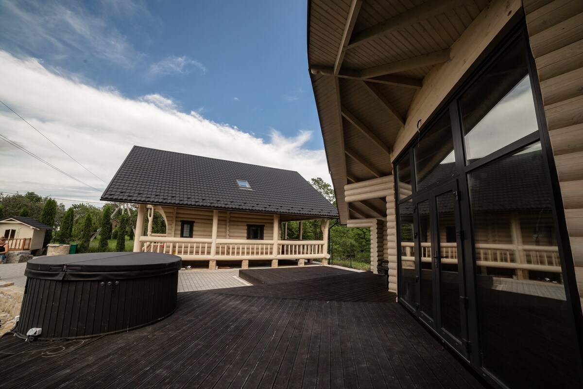 Til leigu viðarbústaður, sundlaug , gufubað, setustofa , gervihnattasjónvarp, þráðlaust net , Ókeypis bílastæði fyrir bíla , eldhús , ísskápur, hraðsuðuketill, borðstofa og teþjónusta og fleira. 3 svefnherbergi (4 hjónarúm), 3 baðherbergi (sturta í hverju herbergi, salerni, þvottahús), fjöldi handklæða – 2 á mann. Svalir með útsýni yfir fjöllin . Fyrir viðbótargreiðslu er kokkur sem getur eldað fyrir þig.