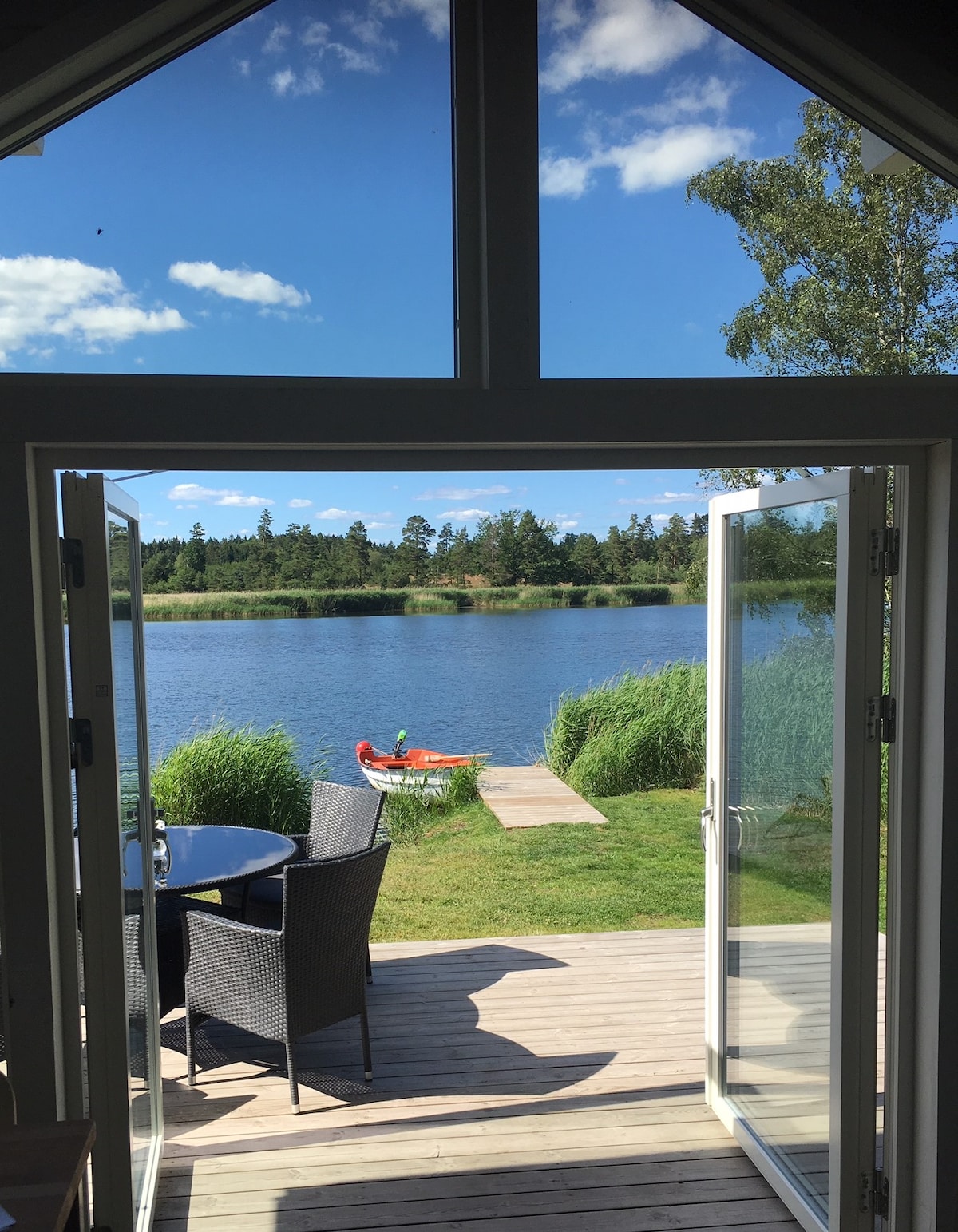 Verið velkomin í nýjan Arkitekthannaðan Attefallshus sem er um 30 fm með svefnlofti sem er aðgengilegt í gegnum alvöru stiga. Við hausthúsið er 10 fm fregebod. Húsin eru aftast á villulóð með afskekktri verönd. Þetta gerir pláss fyrir 4 gesti og bæði húsin eru innifalin þegar leigt er út. Staðsett á rólegu og fallegu svæði með göngufæri við nokkur baðsvæði, padel, kajak, verslanir og miðborgina með veitingastöðum og Kalmar kastala. Nálægðin við Öland er steinsnar frá.