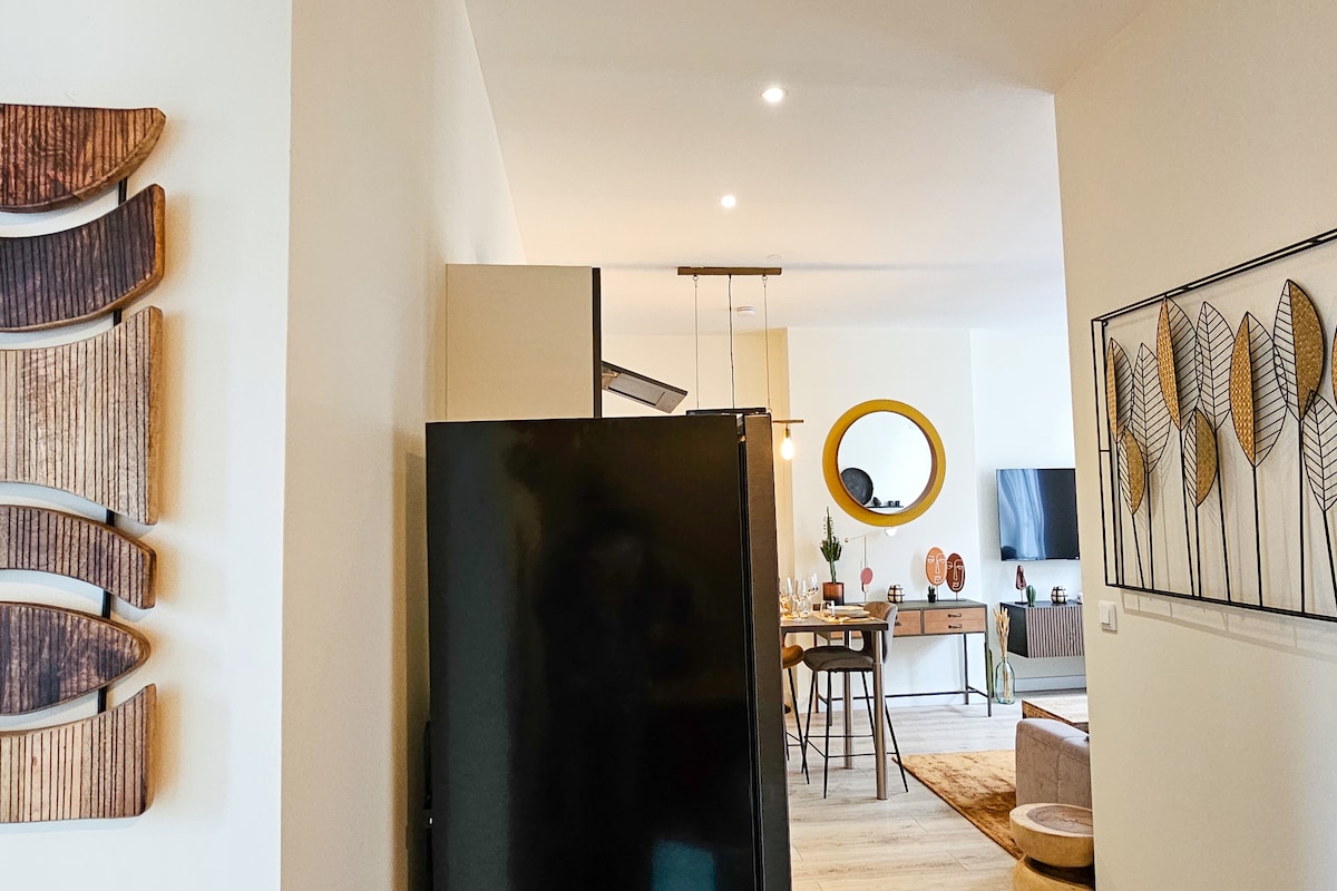 Þurfið þið að hlaða batteríin sem par? Verið velkomin í Cocon de Romy, afslöngunarstaðinn ykkar! Njóttu ótakmarkaðs einkajakúzzí, gufubaðs, skyggnusjá fyrir kvikmyndakvöld, fullbúins eldhúss og notalegs andrúms sem stuðlar að slökun. Góð stund til að hittast og njóta hverrar mínútu. Lágmarksaldur 16. Gistiaðstaðan er ekki búin undir börn og af öryggisástæðum er börnum ekki leyft að dvelja í gistiaðstöðunni okkar.