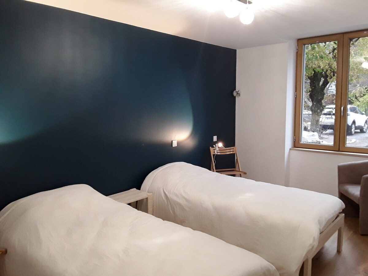 Gîte okkar er hannað fyrir allt að 4 manns. Henni er stjórnað að vild: - Rúmföt í boði - Rúmföt til heimilisnota - Handklæði eru ekki til staðar (valkvæmt) - Enginn morgunverður eða máltíðir The jacuzzi is extra (15 to 20 euros/session depending the number of people). Frekari upplýsingar er að finna í hlutanum „aðrar athugasemdir“.