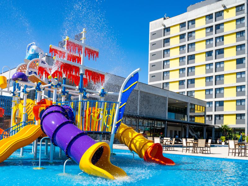 Estrutura completa de um resort a poucos passos do Beto Carreiro World. Possui 3 piscinas sendo uma aquecida, toboágua para as crianças, sala de jogos completa tanto para adultos quanto para crianças, sauna seca e úmida, 3 jacuzzis, sala de spa, bar com serviço na piscina e várias atividades recreativas para as crianças. Além disto você pode deixar o carro no estacionamento do hotel. Basta atravessar a rua e está no Beto Carrero