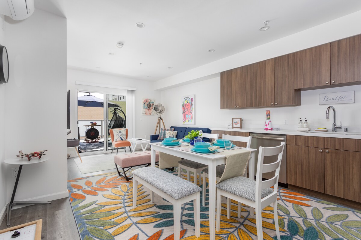 Gaman að fá þig á heimilið að heiman! Þessi nýbyggða 2BR-íbúð í hjarta Koreatown býður upp á þægindi, stíl og þægindi. Njóttu fullbúins eldhúss, þvottahúss á staðnum, aðgangs að líkamsræktaraðstöðu, öruggra bílastæða og útisvæðis. Aðeins steinsnar frá vinsælum veitingastöðum, verslunum og afþreyingu en samt friðsælt afdrep. Fullkomið fyrir viðskiptaferðamenn eða ferðamenn í frístundum sem vilja upplifa það besta sem Los Angeles hefur upp á að bjóða!