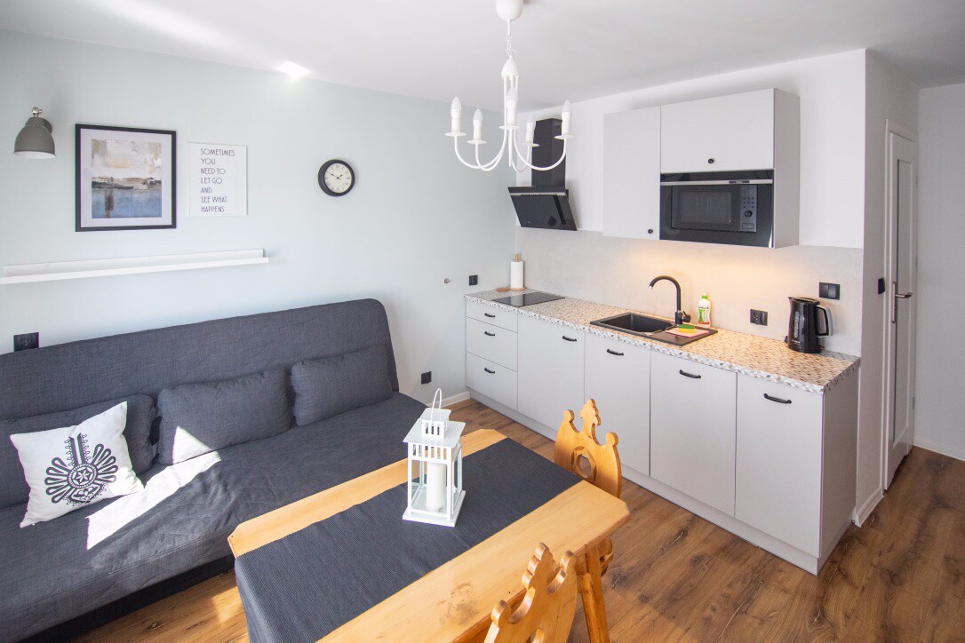 This whole apartments is completely yours! We've been Air B&B Superhosts since 1 month of placing this listing on Air B&B. The whole apartment will be solely yours, with an effortless keybox check-in system. A whole pack will be provided to you including host contact numbers, video's of how to access the apartment, opening the keybox and even how to find the apartment from the main road in Nowy Targ. We are renowned for our effective communication and looking after our guests.