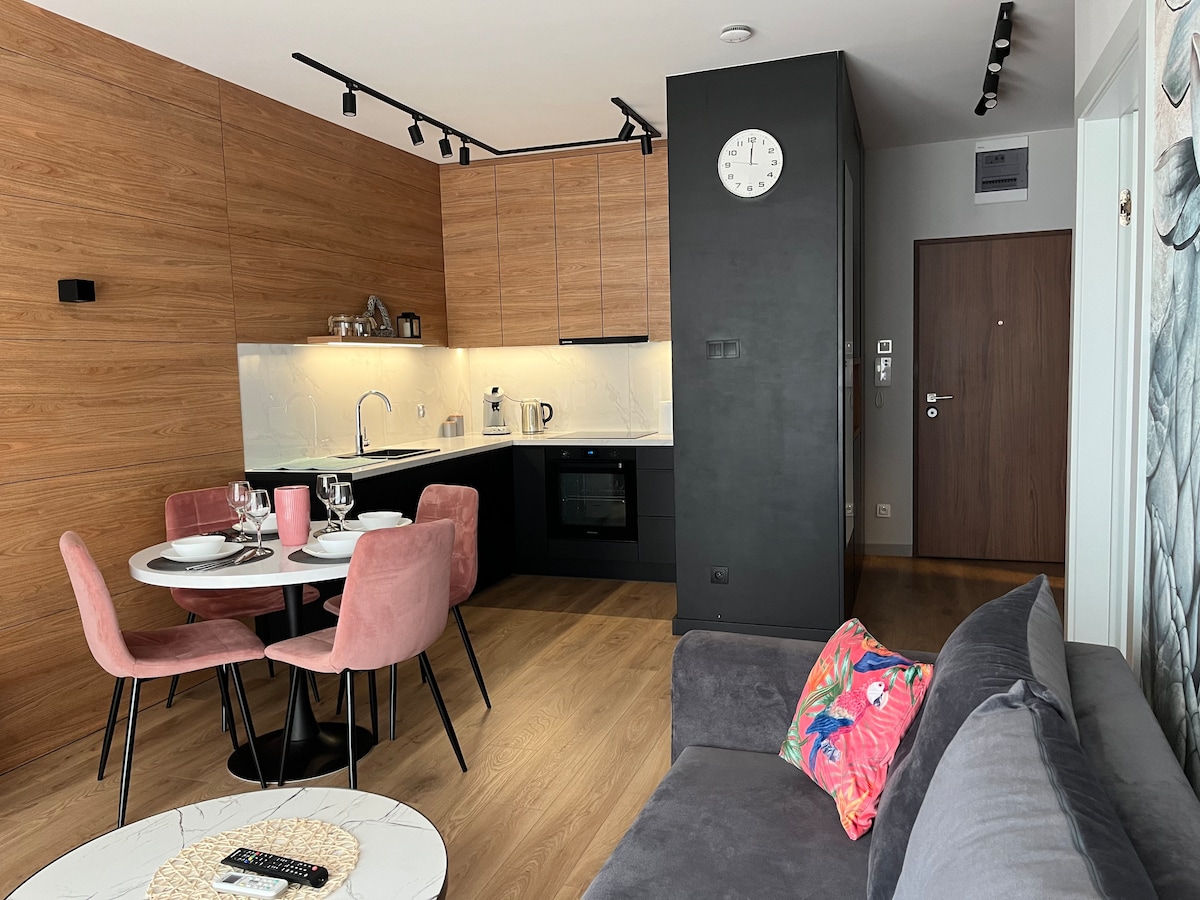 Íbúðin er staðsett nálægt miðbænum (7km, 10 mínútur með bíl), nálægt strætóskýli og ókeypis bílastæði fyrir framan blokkina. Íbúðin er staðsett í góðri, rólegri hverfi. Innréttingarnar eru mjög notalegar með öllum nauðsynlegum þægindum, hröðu þráðlausu neti, 55" snjallsjónvarpi (YT, Netflix, HBO GO o.s.frv.), eldhús með búnaði (diskar, bollar, glös, hnífapör, ketill, pottar, pönnur, ofn með helluborði, uppþvottavél, ísskápur, frystir, þvottavél o.s.frv.).
