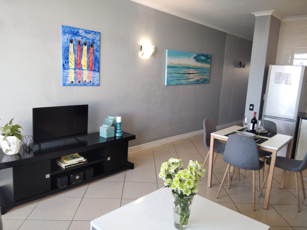 Relaxation is the perfect way to describe this bright and sunny Apartment in the heart of Cape Town's most famous windsurfing, kitesurfing hot spots with views of the majestic Table Mountain where you can enjoy the tranquillity of the sound of waves. It offers a spacious and luxurious feel, with 2 bedrooms, 2 en-suite bathrooms and stylish kitchen that has all the features for a pleasurable self-catering stay. A shopping centre, restaurants, Cafes and laundromat within walking distance.