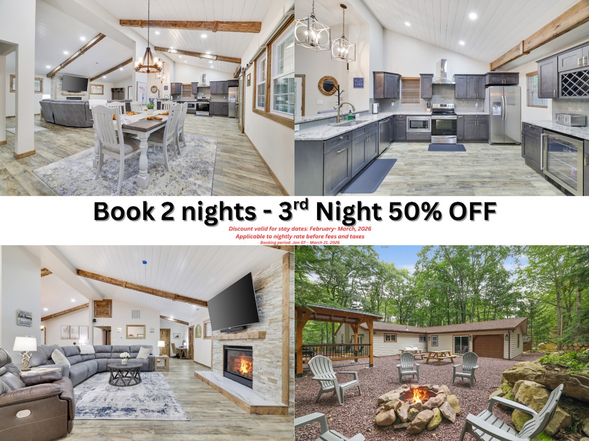 Ultimate Cabin in Poconos | fire pit | wine room