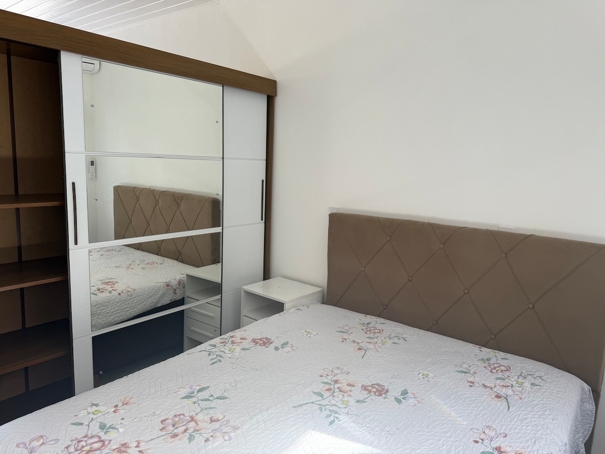Þessi glæsilega gisting er fullkomin fyrir ferðir fyrir tvo, en hún er með svefnsófa í stofunni sem rúmar allt að tvö börn að lokum, hún er í 5 mínútna fjarlægð frá borginni Biguaçu, með frábærum aðgangi að aðalþjóðveginum BR101 nálægt São Miguel ströndinni og nokkrum öðrum í svæðinu, þar eru frábærir sjávarréttastaðir í nágrenninu, söfn, gönguleiðir, fossar, frábært til hvíldar eða vinnu!