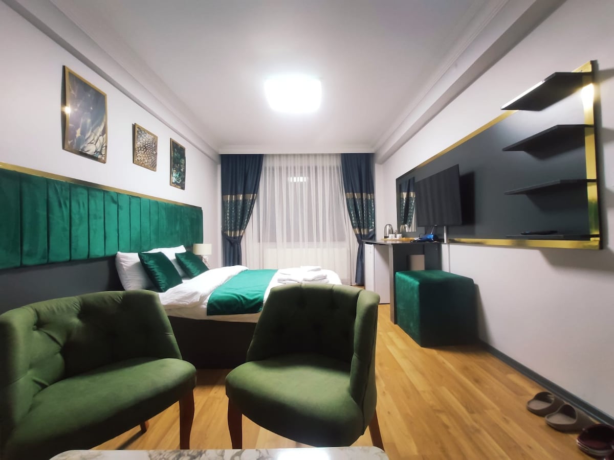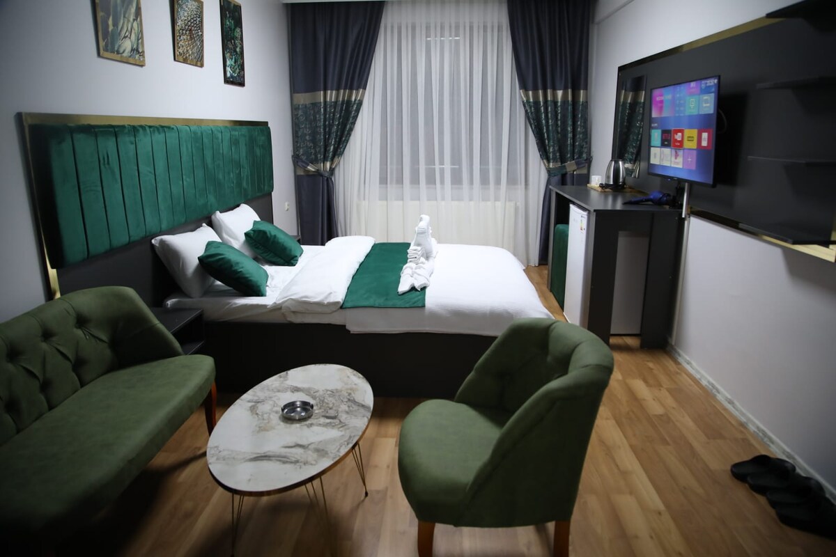 Íbúðahótelið okkar er staðsett í miðri borginni og er í göngufæri frá sögufrægum, túrista- og skemmtistöðum Eskişehir. Fyrirtækið okkar veitir þér þægindi heimilisins með upprunalegri og stílhreinni hönnun. Í herbergjunum okkar, sem samanstanda af 25 fermetrum, hefur allt sem þú finnur fyrir þörfum þínum, svo sem ný húsgögn, sjónvarp, lítill ísskápur, þráðlaust net, lyfta, kattle og hárþurrka, verið úthugsað fyrir þig, okkar virtu gesti.