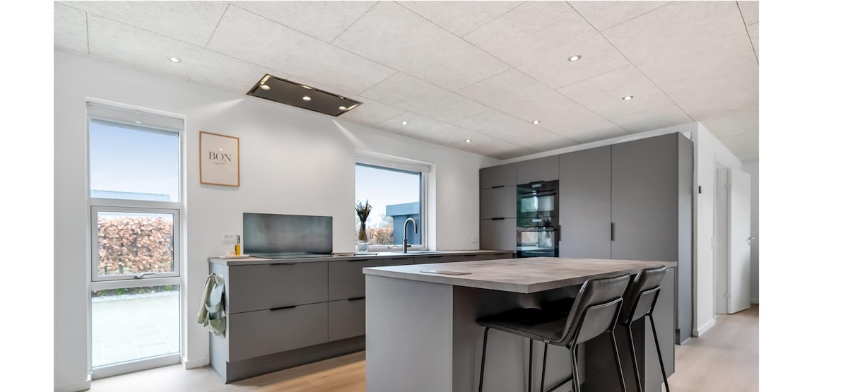 Modern Home Near Billund Center – Quiet & Central Gistu í bjartri, uppgerðri villu við hinn fallega Billund Bæk-straum, í nokkurra mínútna fjarlægð frá LEGO® House og miðbænum. Hér eru 3 svefnherbergi, opin stofa/borðstofa með arni, einkagarður með verönd og ókeypis bílastæði á staðnum. Gakktu að verslunum, kaffihúsum og áhugaverðum stöðum. Tilvalið fyrir fjölskyldur, viðskiptaferðamenn.
