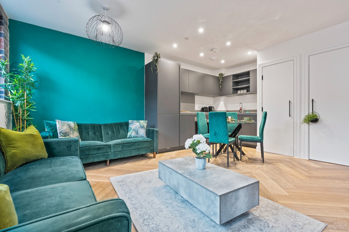 Verið velkomin í Lockside Haven, glæsilega tveggja rúma íbúð með útsýni yfir síkið í miðborg Birmingham. Njóttu nútímalegra innréttinga, ofurhraðs þráðlauss nets og ókeypis bílastæða steinsnar frá Brindleyplace, ICC og bestu veitingastöðum borgarinnar. Fullkomið fyrir fagfólk, pör eða helgarferðir — slakaðu á með snjallsjónvarpi, fullbúnu eldhúsi og friðsælu útsýni yfir síkið. Heimili þitt að heiman í hjarta borgarinnar.