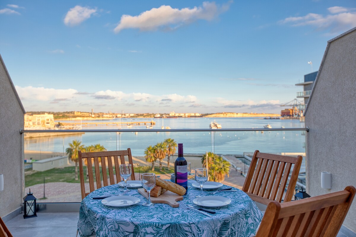 Vaknaðu með óslitið útsýni yfir Marsaxlokk-flóa í þessari tveggja svefnherbergja þakíbúð með heitum potti til einkanota, sólpalli og grillsvæði. Fullkomið fyrir 2–4 gesti með 2 king-size rúmum, fullbúnu eldhúsi, þráðlausu neti, loftkælingu og fleiru. Staðsett á efstu hæðinni, steinsnar frá göngusvæðinu, sjávarréttaveitingastöðum og markaðnum. Tilvalið fyrir rómantískt friðsælt frí á einum af bestu stöðum Marsaxlokk.