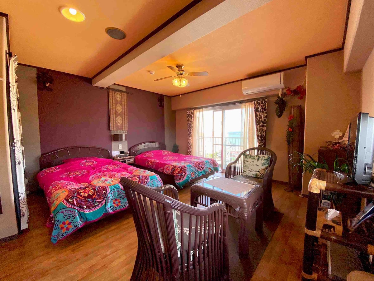 Dvalarstaðurinn í Okinawa! Við skulum eyða afslappandi tíma! * Hawaiian stíl íbúð * IC 7 mínútna göngufjarlægð frá ströndinni 3 mínútur!