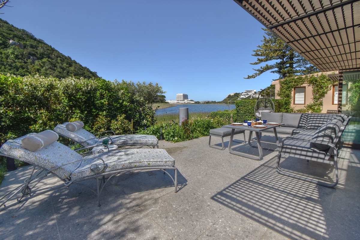 Innan hins óspillta Keurbooms-náttúruverndarsvæðisins og í stuttri akstursfjarlægð frá ferðamannabæjunum Plett og The Crags. Þessi sólríka eining á jarðhæð er með aðskilinn inngang að garði með eigin stofu, eldhúskrók og braai-verönd. Settu 70 metra frá Keurbooms River lóninu, fimm mínútna göngufjarlægð meðfram lóninu að hafinu/ströndinni, sem er þekkt fyrir fallegar Pansy skeljar og ósnortna Keurbooms River Sea Bird Reserve. (Þessi strönd er EKKI örugg til sunds)