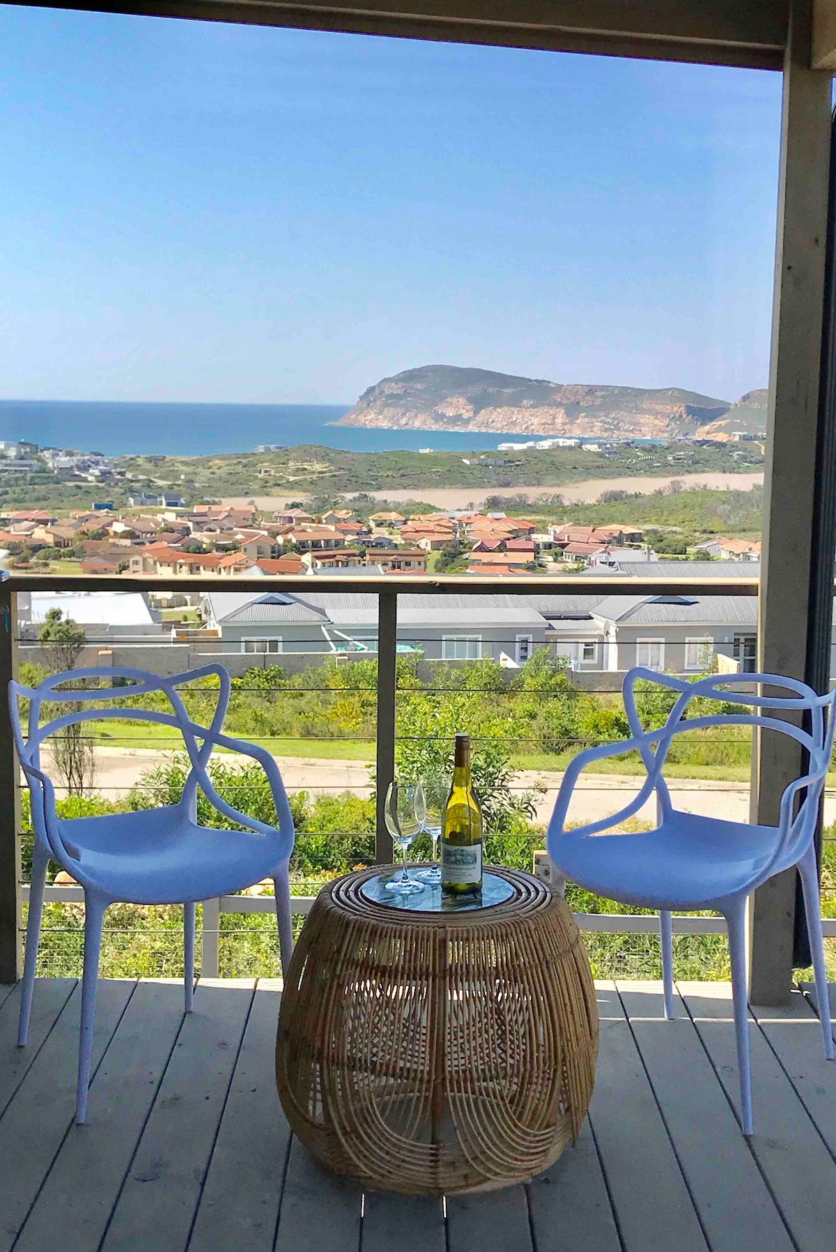 Í þessum glæsilega afdrepi við ströndina sem snýr að gróskumiklum runna og fjöllum er alltaf hægt að óska eftir því að gestir hafi bókað lengri dvöl. Útsýnispallurinn er í stuttri göngufjarlægð frá allri Plettenberg-flóa. Njóttu ósnortinnar fegurðar einnar af ósnortnustu ströndum SA. Vaknaðu við fuglasöng; farðu í langa strandgöngu; blettaðu höfrunga; braai og slappaðu af á sólríkri veröndinni, áður en sólsetur víkja fyrir afrískum stjörnum.