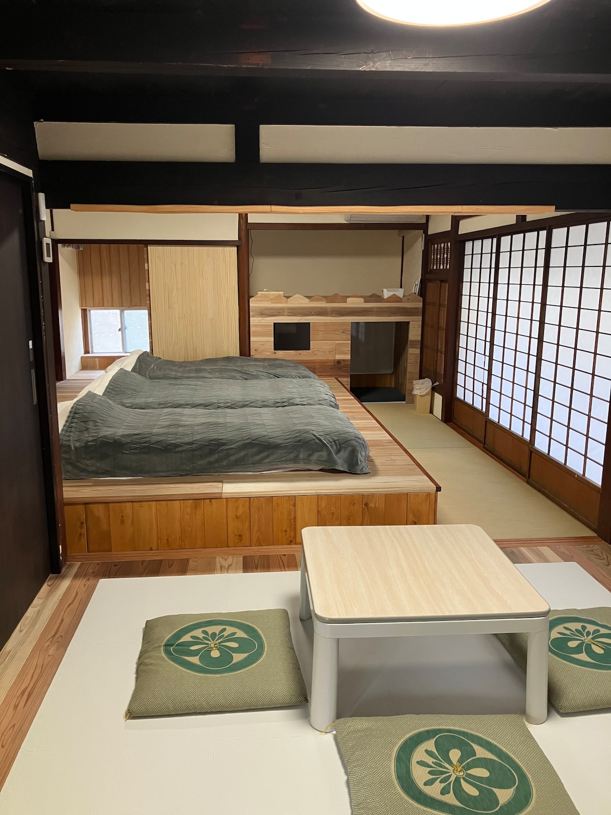Eins og fram kemur á NYTimes T-listanum er þessi eign „Kyomachiya“, hefðbundið japanskt heimili sem er meira en 100 ára gamalt. Það hefur verið endurbætt úr „Nishijin-ori“ (hefðbundinni japanskri textílverksmiðju). Það er staðsett í hinu hefðbundna Kamigyo Ward, í nokkurra mínútna göngufjarlægð frá keisarahöllinni. Við unnum með verðlaunuðum arkitektum í Ikken til að endurnýja þetta rými, sem nú rúmar þægindi nútímalífsins og halda um leið mörgum af upprunalegu uppbyggingu og þáttum úr fortíðinni.