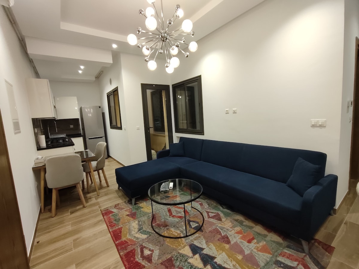 Nútímalegt smáhýsi á friðsælu svæði í Ennasr 2. Einkainngangur við aðalveginn, eins og þitt eigið lítið hús. Lítið en fullbúið: Þessi stílhreina íbúð er hönnuð fyrir næði, þægindi, ró og þægindi — tilvalin fyrir pör eða einstaklinga. 🌿 Aðalatriði: • Einkainngangur,jarðhæð,ekkert sameiginlegt rými • Sjálfsinnritun og einkabílastæði • Loftræsting og upphitun • þráðlaust net • Snjallsjónvarp og aðgangur að streymi • Fullbúinn eldhúskrókur • Glæsileg stofa