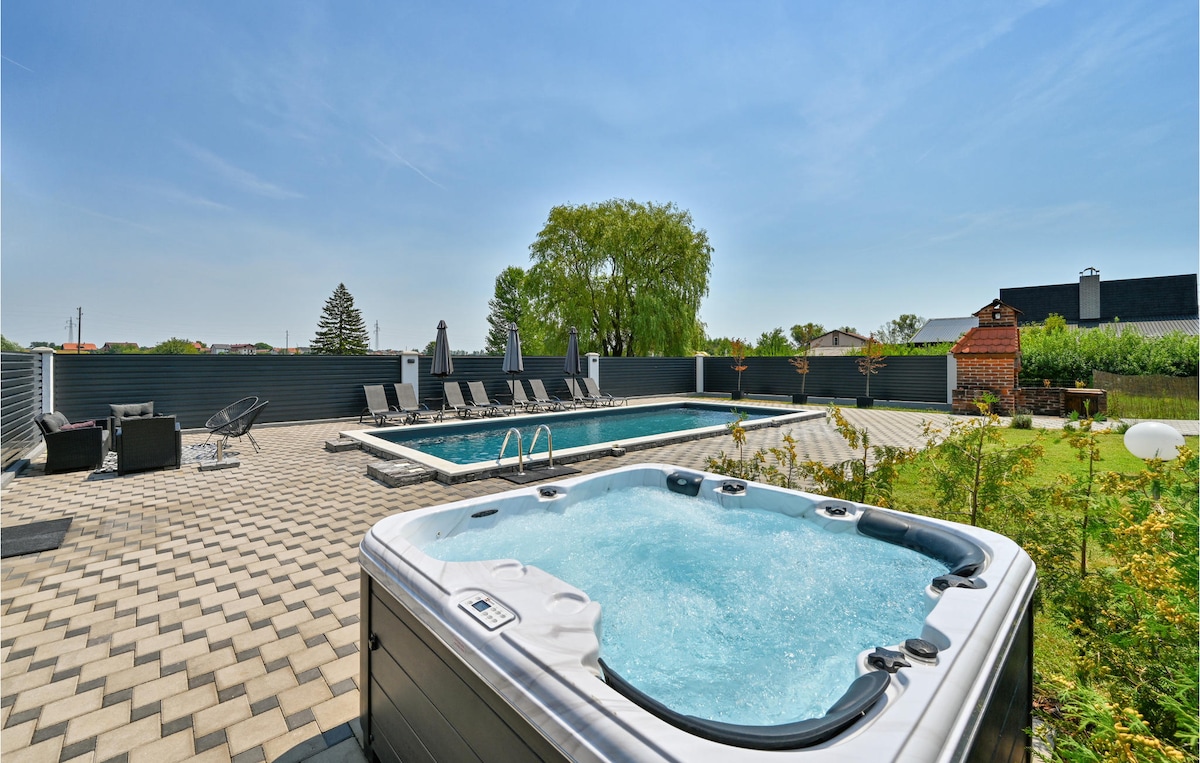 Villa BeleVita er ný eign staðsett á fallegum stað í 5 km fjarlægð frá borginni Đurđevac. Það er staðsett í vin friðar og kyrrðar og ósnortinnar náttúru. Umkringt hæðum, vínekrum, engjum og lundum. Landslagsgarður villunnar er 5.000 m2 að stærð. Innan villunnar er upphituð sundlaug sem er 50 m2 að stærð með sólbaði og nuddpotti. Gestir hafa aðgang að leiksvæði fyrir börn sem og grillaðstöðu með borðstofu utandyra sem gerir þetta að fullkomnum stað fyrir fjölskyldufrí og frístundir.