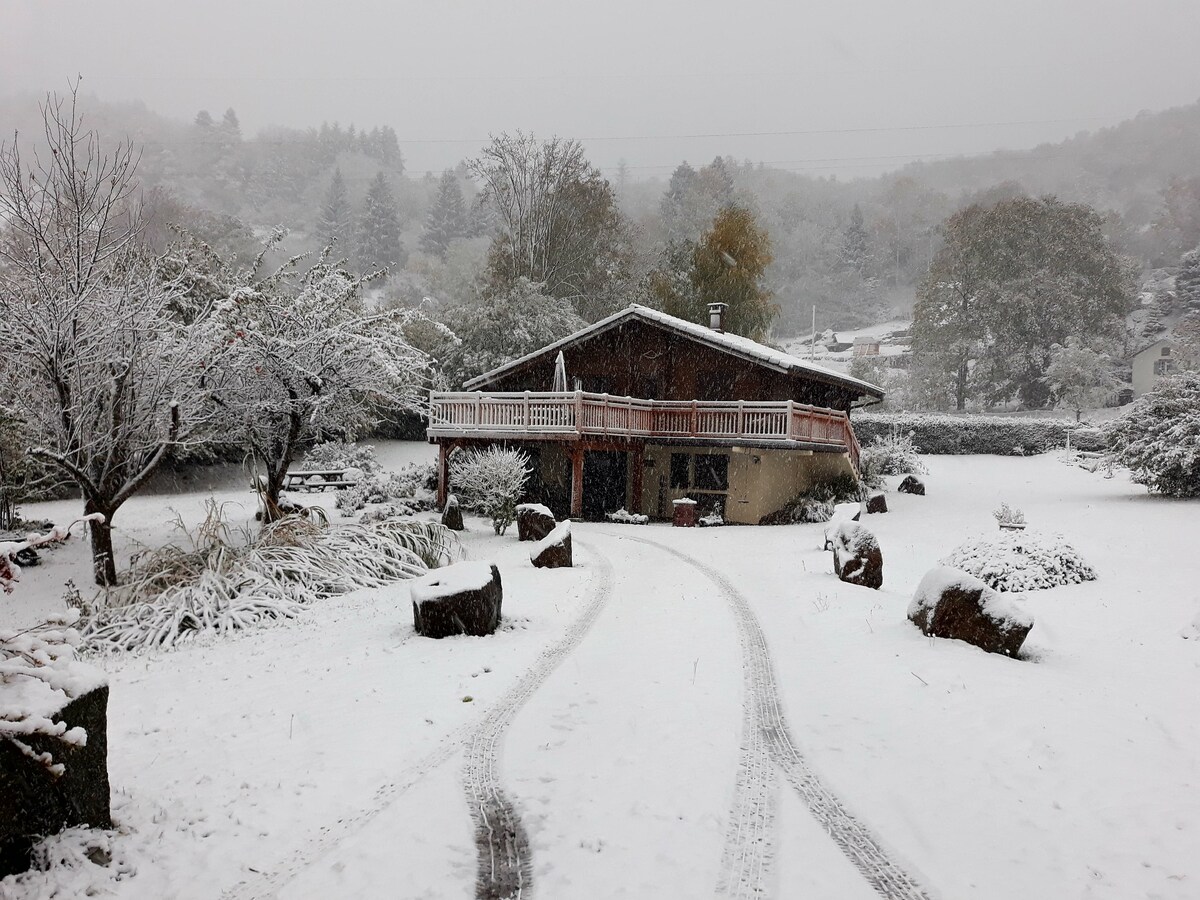 Frá Geishouse, fjallaþorpinu Ballon des Vosges Regional Park 750 m fjarlægð, þú getur heimsótt Alsace , gengið eða bara hlaðið batteríin á staðnum. Frá þessum yfirgnæfandi, þægilega kofa er frábært útsýni yfir þorpið og náttúrulegt landslagið. Það opnast alfarið út á einkaveröndina þína í fallega blómagarðinum. Allt árið um kring munt þú njóta margra rýma garðsins og á sumrin er skugginn af stóru trjánum við jaðar náttúrulegu laugarinnar.