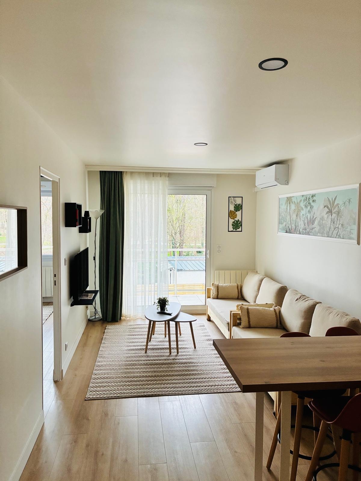 Très bel appartement au calme, à deux pas du centre-ville d’Epernay. Vous y trouverez un bel espace de vie avec cuisine entièrement équipée, une partie salon avec canapé-lit (d’appoint) et TV. Un WC séparé. Une chambre principale équipée d’un lit 160x200, ouvert sur la salle de douche. Une deuxième chambre, communicante avec la première (attention pas de porte entre les 2 chambres), équipée d’un lit gigogne et placards, qui convient bien pour les enfants. Clim réversible dans l’appartement.