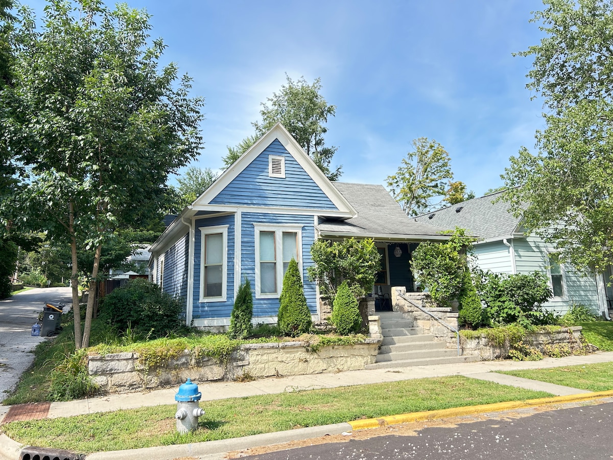 Þetta 3 BR 1.5 BA er hreint, grænt og skilvirkt lítið íbúðarhús í göngufæri við miðbæinn, Bryan Park, Switchyard Park og B-Line slóðina. Þú getur sleppt, hoppað, stokkið eða jafnvel hjólað að Bryan Park, B-line trail, Hopscotch Coffee eða Indiana University (í 1,6 km fjarlægð). Húsið tekur bæði vel á móti fullorðnum og börnum með hlýlegum einkennum fyrir zen og leik. Heimilið er hlýlegur staður fyrir vini og ættingja sem ferðast saman.