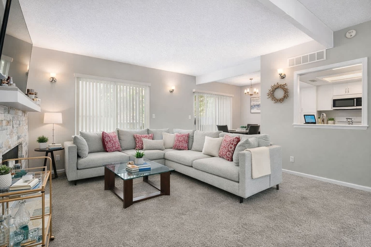 Slappaðu af á þessu listræna, nýuppgerða raðhúsi í nokkurra mínútna fjarlægð frá veitingastöðum, verslunum og afþreyingu. Tvö king-svefnherbergi með snjallsjónvarpi skapa frábært frí fyrir tvö pör eða litla fjölskyldu. Njóttu fullbúna eldhússins eða grillsins á einkaveröndinni. Kjallarinn þjónar sem setustofa og skrifstofurými og er með sjónvarpi, sófa, skrifborði, þvottahúsi og fullbúnu baði. Gakktu að samfélagslauginni eða skelltu þér á völlinn fyrir körfuboltaleik, tennis eða súrsunarbolta með búnaði.