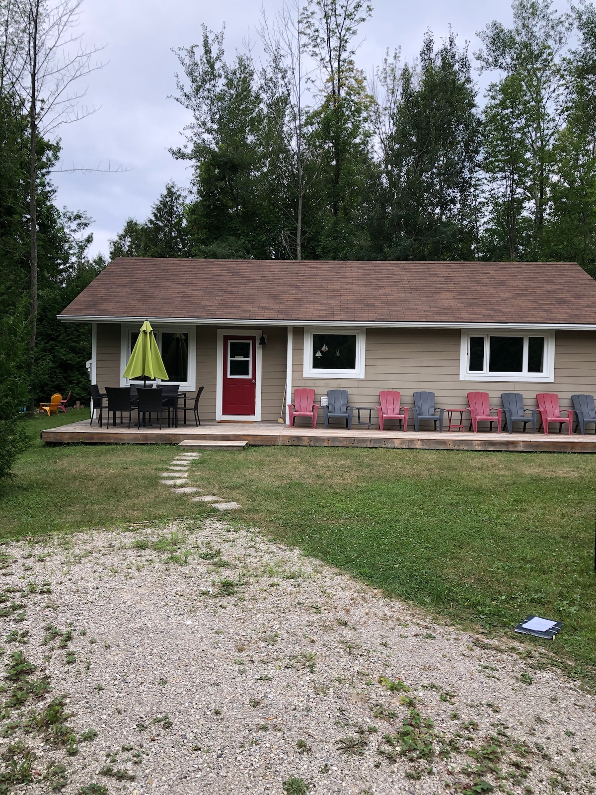 Tucked away among mature trees our charming Yellow Cottage offers privacy and a peaceful setting. The property includes parking for two vehicles and a fire pit in the yard-perfect for gathering under the stars and enjoying quiet evening campfires. Inside, the cottage blends rustic charm with refined comfort, featuring cathedral ceilings and a warm, open concept living space. The cottage comfortably sleeps guests in a private bedroom or an open loft each with a queen bed.