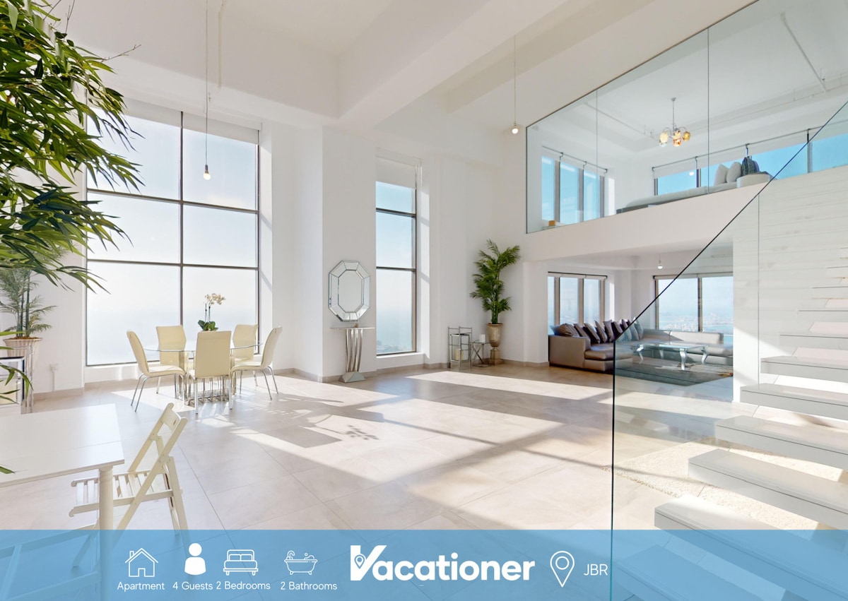 Draumur þinn 2BHK umkringdur Arabíuflóa. Svæðið er staðsett á þekktustu eyjunni í Dubai Blue Waters og er frábær orlofsstaður fyrir gesti sem vilja annaðhvort slaka á við ströndina eða sem fjölskylduferð með mörgum afþreyingarmöguleikum og veitingastöðum á svæðinu, þar á meðal Dubai Eye, JBR-strönd og Caesars-höll. Nútímalegt yfirbragð íbúðarinnar sem hönnuð er af vel ferðuðum hönnuðum gerir þetta að fullkomnu heimili meðan á dvöl þinni stendur.