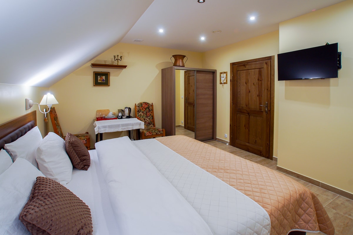 Zapraszamy do apartamentu "Słowiański" w agroturystyce Wąkop 6 – przestrzeni, gdzie tradycja spotyka się z nowoczesnością. Wnętrze zaprojektowane przez włoskiego designera i lokalną polską artystkę urzeka detalami: mandale, wielkie łóżko King Size i duża łazienka w słowiańskim stylu zapewnią pełnię komfortu. Aneks kuchenny pozwala na przygotowanie posiłków, a wyjątkowa atmosfera sprzyja relaksowi. Zarezerwuj już dziś, by doświadczyć niezwykłego połączenia sztuki i komfortu w sercu Gór!