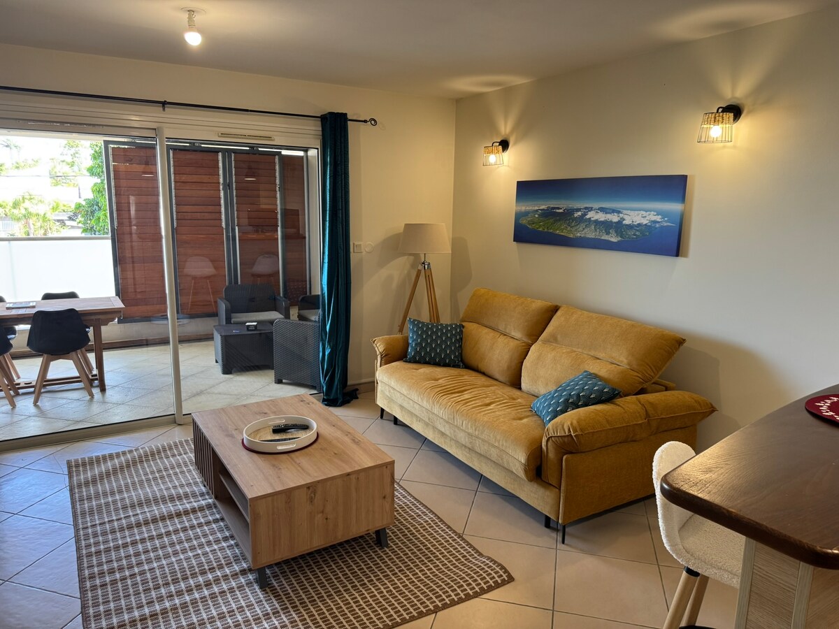 La Conciergerie de Bourbon presents this charming air-conditioned apartment in La Saline les Bains, just 1 minute from the beach. Perfect for a couple (with child), it features a bright living area, fully equipped kitchen, 160 cm bed, modern bathroom, and single sofa bed. Located in a quiet residence near the lagoon and local shops. Linen and welcome kit included for a comfortable stay.