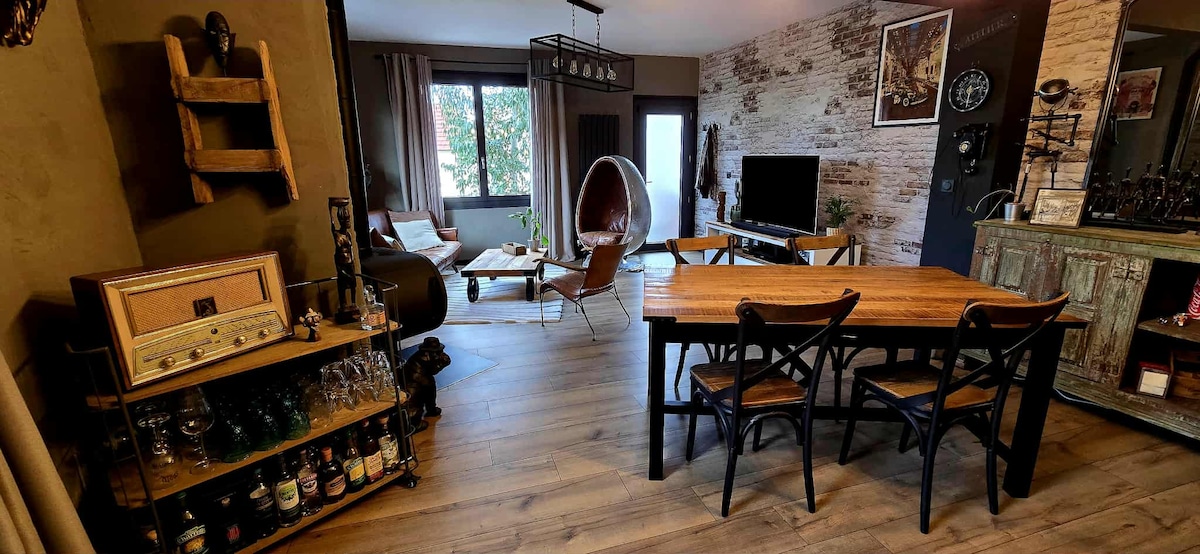 Eftir tveggja ára mikla vinnu komumst við loks þangað. Við höfum búið til þennan ástarkokk fyrir þig svo að þú getir hlaðið batteríin sem par eða skemmt þér með fjölskyldunni. Þetta óhefðbundna hús frá 1500, við vildum hafa það, umbreytti því, en á meðan við héldum áreiðanleika þess með hálfu timbri á framhliðinni, rauðu flísunum á stiganum, lofthæðinni á efstu hæðinni ... En við héldum það einnig og bjuggum það til svo að þér líki það líka. Njóttu núna 🤩