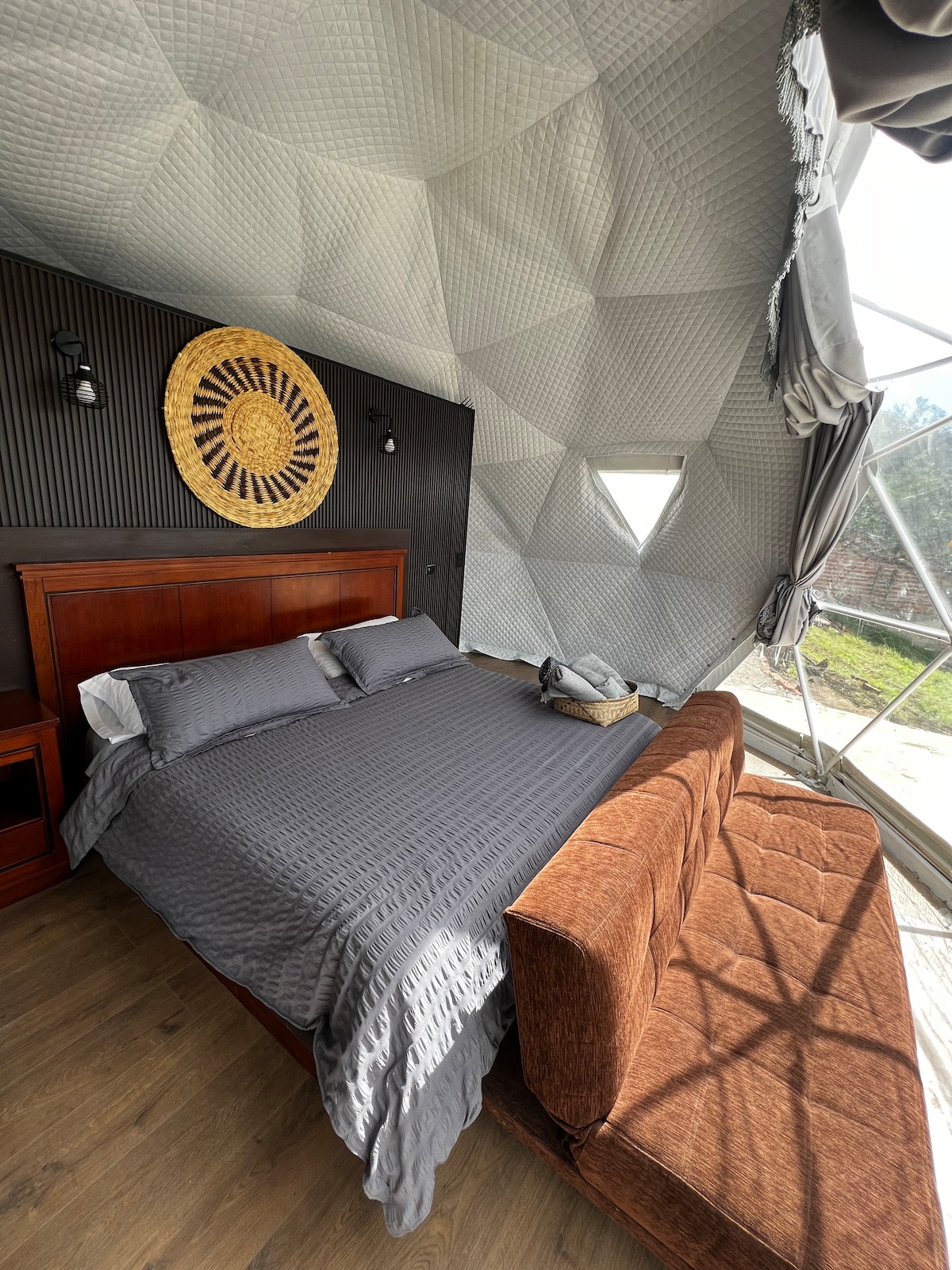 Forðastu rútínuna og upplifðu einstaka lúxusútilegu í ótrúlegu hvelfingunni okkar með mögnuðu útsýni yfir guaranda og fjöllin. Þessi draumahvelfing er í náttúrulegu umhverfi og hefur allt sem þú þarft til að komast í ógleymanlegt og þægilegt frí. The dome is beautiful furnished and decor boho chic that will make you feel like home. Hér er íburðarmikið rúm í king-stærð með 100% lífrænum bómullarlökum og hiksta til að tryggja sem besta hvíld.