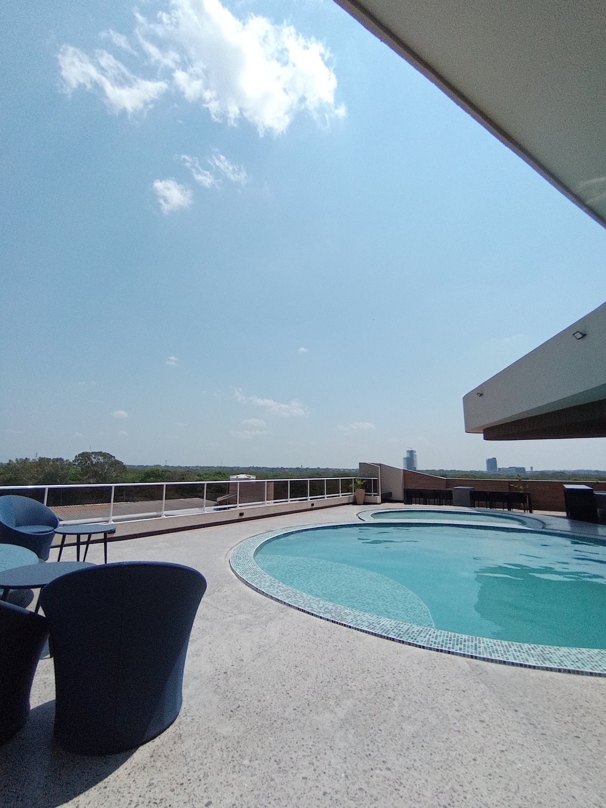 Þetta lúxushverfi er staðsett í Barrio Equipetrol, Edificio Sky Elite, einni húsaröð frá Hotel Los Tajibos; það er fullkomin blanda af einkarétti og heimsklassa þægindum í borginni Santa Cruz de la Sierra, umkringd veitingastöðum, verslunum, kaffihúsum, apótekum og matvöruverslunum. Byggingin býður upp á meira en 3.000 fermetra félagssvæði, þar á meðal nútímalega líkamsræktarstöð, stóra sundlaug, churrasquera, vinnufélaga, einkakvikmyndahús, gufubað og nuddpott.