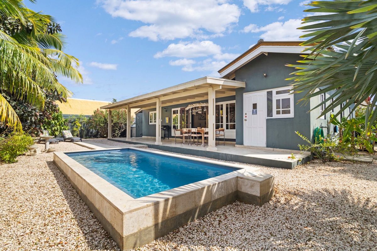 Mi Kas Stima is een luxe villa op Bonaire met een magnesium zwembad, ruime veranda met BBQ, drie slaapkamers en twee badkamers. Perfect voor duikers en surfers: duikspots op 3 min, Lac Bay en Atlantis Beach op 10 min. Inclusief spoelbak voor duikuitrusting en privéparking. Rust, comfort en een toplocatie vlak bij Kralendijk – alles is bespreekbaar voor een onvergetelijk verblijf!
