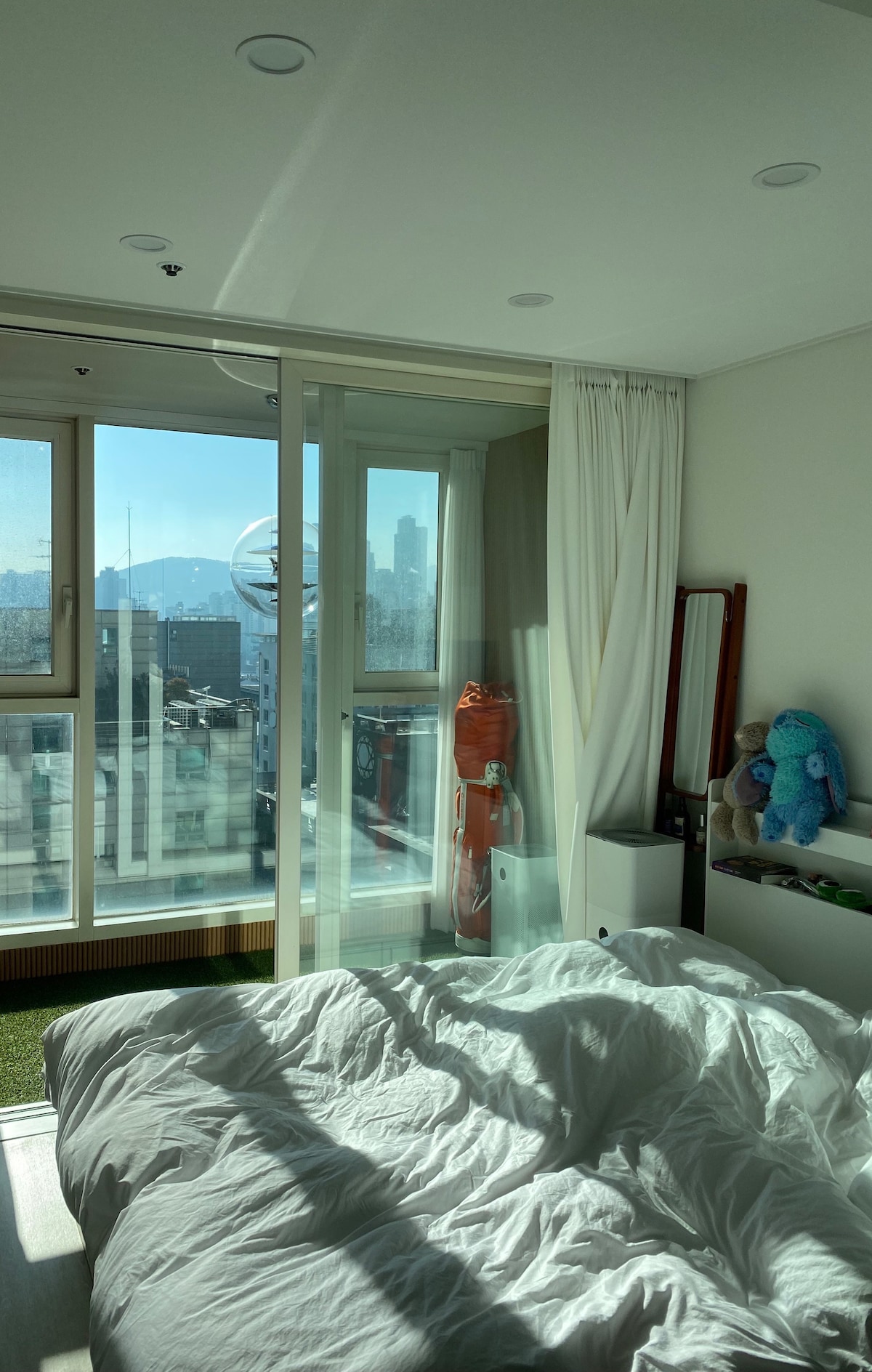 SEOUL SKYLINE from TOP FLOOR Panoramic Landmark : Hangang River, Seoul N Tower, and Lotte Tower On the Move: Walk 10 secs to Bongeunsa Station (Line 9), 10mins to Samseong Station (Line 2) From Airport: Take AREX and Line9, or Airport Bus Urban Essentials: COEX Shopping Mall, Grocery Shops nearby Cultural Connection: 5 mins to the historic Bongeun Temple (Oldest temple: Founded in 794) Design Touch: This place was designed and renovated by K-pop Star, Got7
