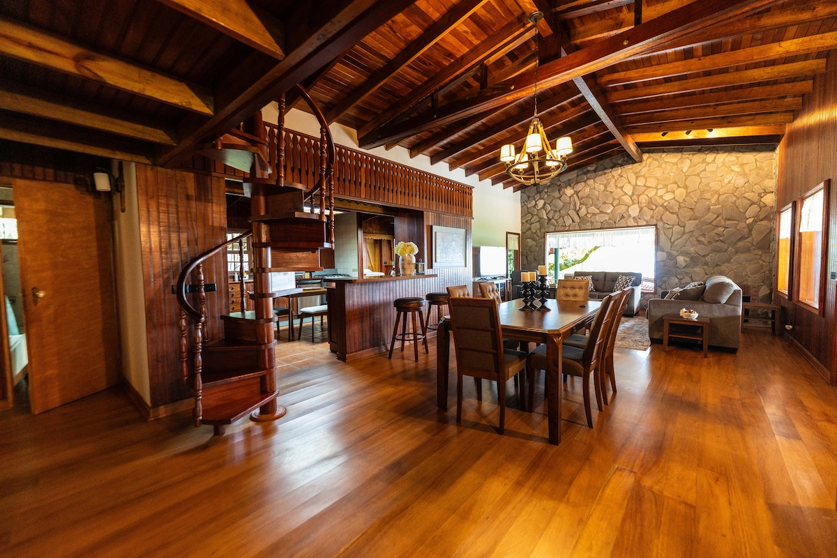 Frá 200 fermetra opinni sameiginlegri verönd á miðhæðinni getur þú notið kaffisins um leið og þú nýtur hálendisferðarinnar og einstaks útsýnis yfir skemmtilega bæinn Boquete. Loftíbúðin við hliðina á henni er með fullbúnum eldhústækjum, lítilli stofu, borðstofu og þvottahúsi. Í „Butterfly Sanctuary“ er stór skápur og hjónarúm. „Hummingbird Haven“ er með queen-size rúm og LED-sjónvarp með kapalrásum. Þráðlaust net: 250Mbps. Aðgangur að risi, verönd og svefnherbergjum er í gegnum stiga utandyra.