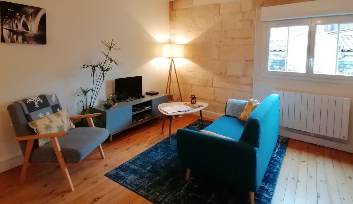 Verið velkomin í fallegu íbúðina mína með 1 svefnherbergi sem er vanalega „Bordeaux-stíll“ með kalksteinsvegg og marmaraarinn. Hún er full af persónuleika, mjög hrein, þægileg og björt. Staðsetningin er sú besta í sjarmerandi hluta gamla miðbæjarins. Auðvelt aðgengi fótgangandi að öllum stöðum í miðbænum. Íbúðin er á 1. hæð (án lyftu) í byggingu frá 19. öld. Í 20 m fjarlægð frá byggingunni er BÍLASTÆÐI FYRIR ALMENNING (EKKI ÓKEYPIS) sem heitir „Camille Julian“.