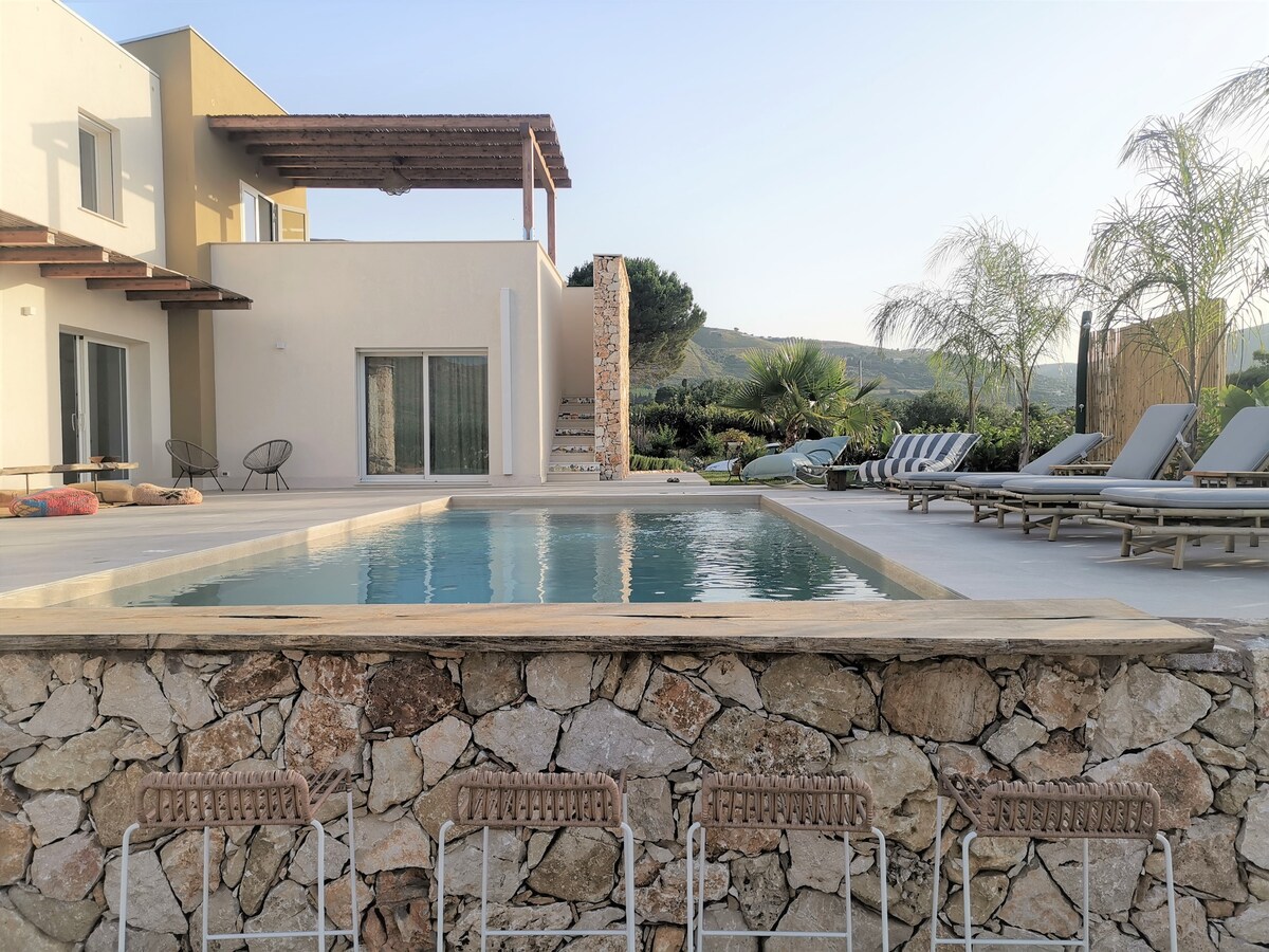 Njóttu fágaðrar fríunar á Sikiley í lúxusrisíbúð með einkasundlaug, staðsett í sögulega Baglio Cappello, hefðbundnu sveitasetri á Sikiley sem er umkringt ósnortnu sveitasvæði. Staður þar sem tíminn hægir á, býður upp á algjör næði, rólega fágun og ósvikinn sjarma. Hún er fullkomlega staðsett á milli Palermo og Trapani og er notalegur afdrep fyrir pör og fjölskyldur sem sækjast eftir þægindum, einkalífi og ósviknum lúxusupplifun. Bíll er áskilinn.
