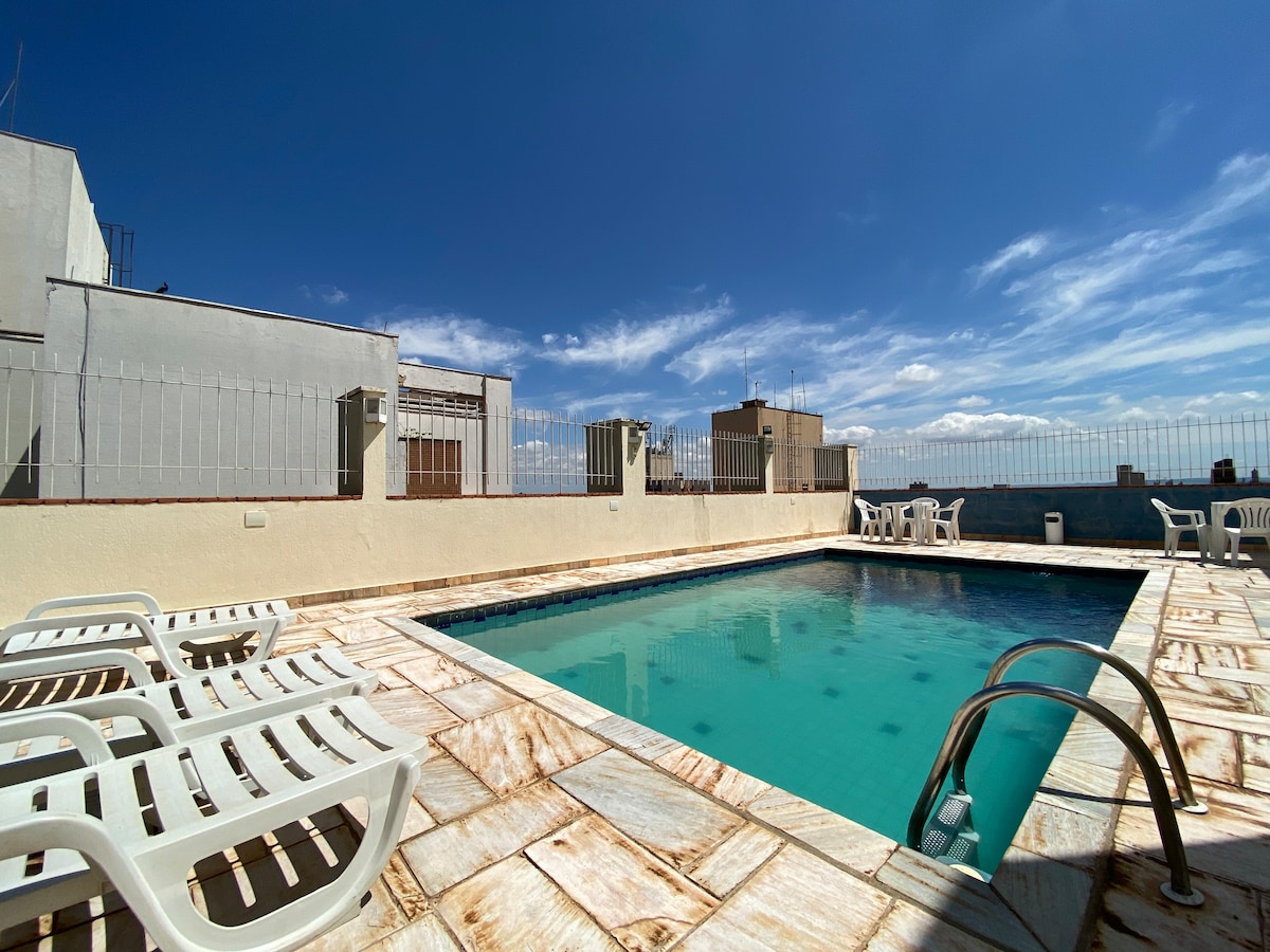 Flat mobiliado no Centro, localizado no 12º andar, com conforto, praticidade e excelente localização. Com 1 quarto, 1 banheiro, sala integrada à cozinha americana equipada, varanda com vista da cidade, ar-condicionado na sala e no quarto, TV e Wi-Fi. Com infraestrutura de hotel, piscina, academia, portaria 24h, elevadores e 1 vaga de garagem com serviço de manobrista. Localização privilegiada: no coração de Ribeirão Preto, a poucos minutos do Shopping Santa Úrsula, Choperia Pinguim e da USP.