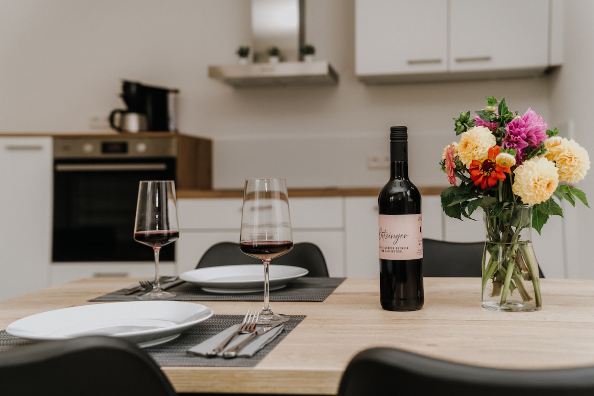 Verið velkomin í björtu og nútímalegu 1 herbergja saltlestaríbúðina okkar á rólegum stað í Bahlingen am Kaiserstuhl! + Verslun á staðnum + 3 mín. ganga að S-Bahn (30 mín. Hjólaðu til Freiburg eða á aðra fallega staði í Kaiserstuhl + stuttar innkeyrslur að Svartaskógi, Alsace og Sviss + Europapark Rust er hægt að ná í 20 mínútur með bíl + Veitingastaðir með svæðisbundnum sérréttum í nágrenninu