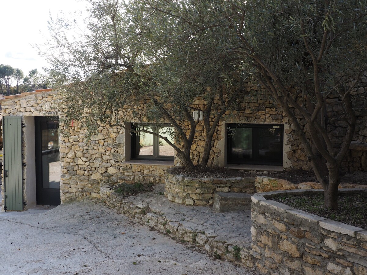 Á milli þistla og rósmarín, nærri litlu Provencal þorpi: - Fullbúið sjálfstætt stúdíó (25 m2) með tvíbreiðu rúmi (160x200), geymslu, barnarúmi, barnastól, þráðlausu neti og loftræstingu. - Fullbúið eldhús með háfi, ísskáp, ofni + örbylgjuofni, hnífapörum, eldunaráhöldum, Nespressokaffivél (lítil plasthylki). - Sturta, wc, - Yurt-tjald í nágrenninu (25 m) með 3 stökum rúmum, rafmagni, loftræstingu og þráðlausu neti. - Sundlaug (15m X 5m. Prof. frá 1.10m til 3.30m) Til að deila með mér...!