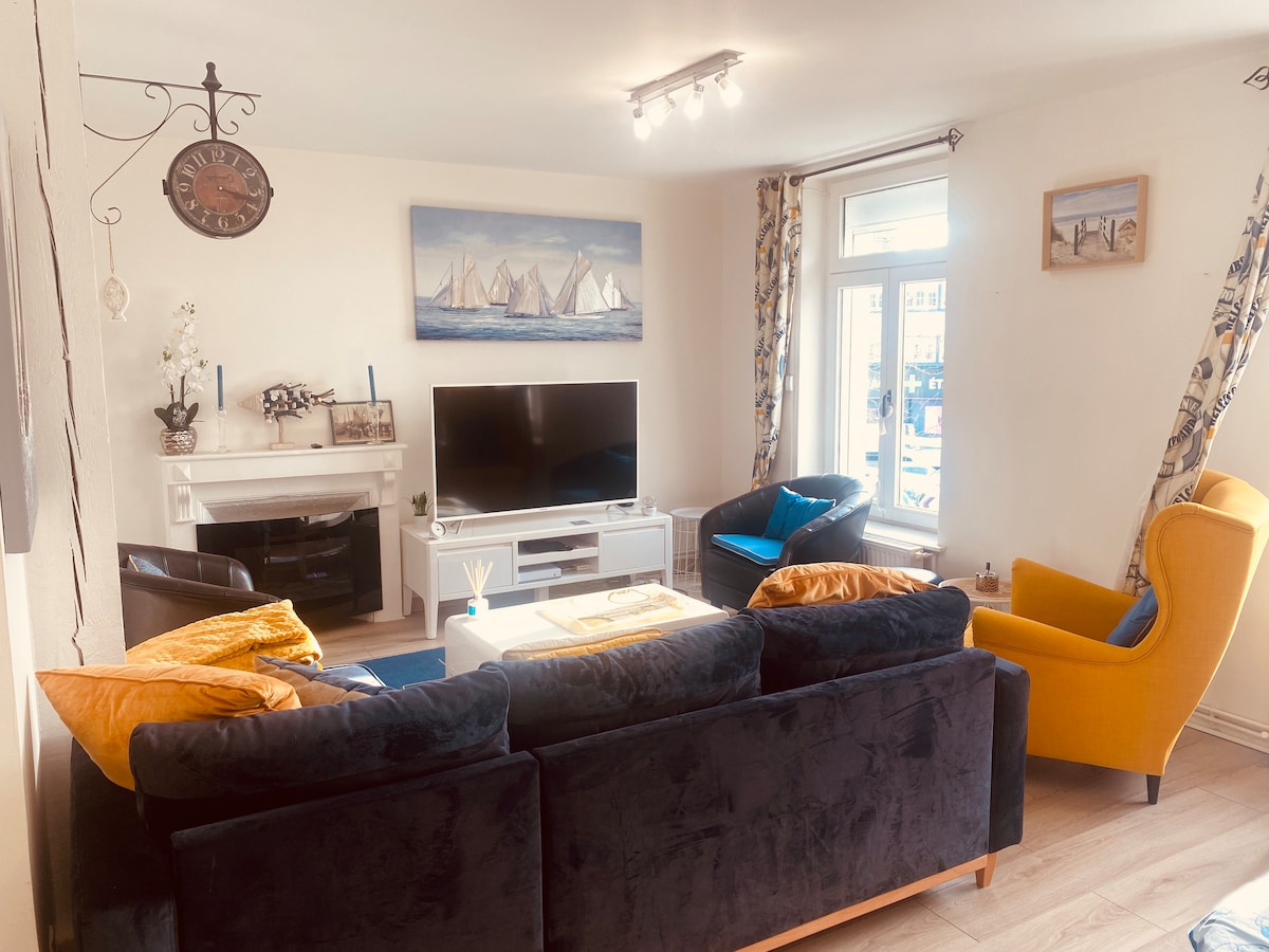 Situé à 70 m de la plage , et du centre ville Classé 3★ - Résidence de tourisme cette maison lumineuse et cosy allie confort moderne et esprit Bord de mer. Profitez d'un séjour convivial avec une belle pièce de vie baignée de lumière grâce à sa grande baie vitrée et son puit de lumière . L'espace comprend un salon confortable, une salle a manger chaleureuse et une cuisine équipée. A l'étage , une mezzanine accueillante abrite un lit double et un canapé convertible pour deux personnes
