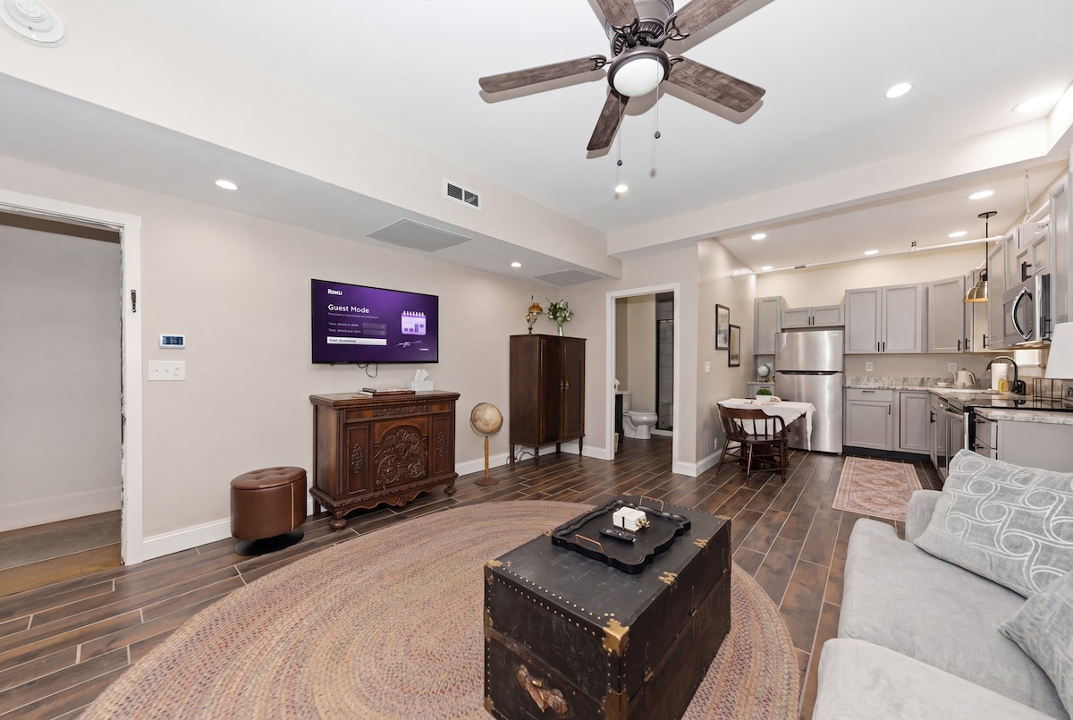 Welcome to the Charming Retreat, a cozy 1-bedroom, 1-bathroom apartment just a short walk from Augusta’s historic Main Street. Enjoy easy access to local restaurants, antique shops, the renowned Augusta Distillery, and scenic river views. With a king-size bed, Smart TVs, a spa-style bathroom, and convenient parking, this well-appointed space is perfect for weekend getaways or extended stays. The kitchenette features a full-size refrigerator, microwave, induction burner, and coffee maker.