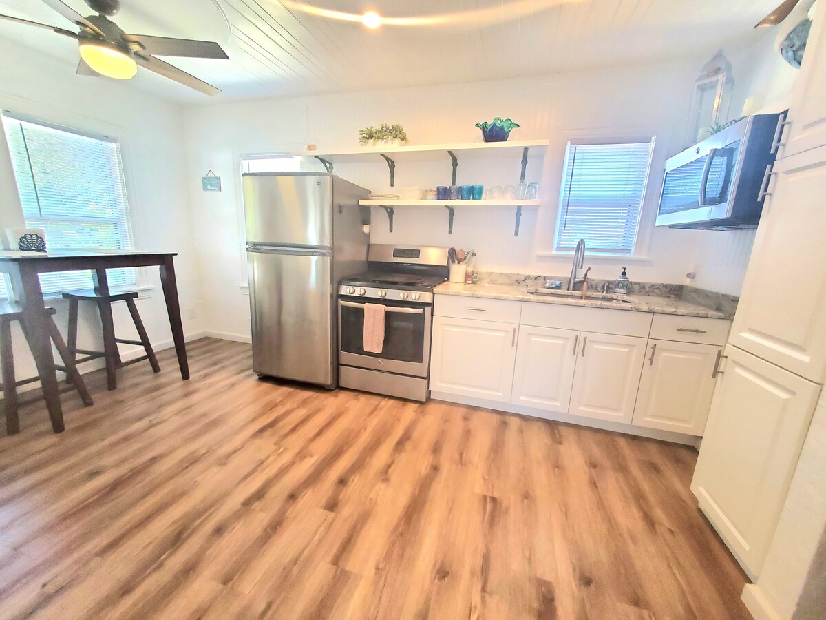 Welcome to our newly renovated beachy 2nd floor guesthouse in Historic Kenwood. This spacious 1 bedroom (King bed), 1 bath is an easy walk, bike, or short drive to St Pete restaurants, bars, breweries, antique shops, museums, live entertainment and so much more. Grand Central District is just a 5 min walk, Edge District is 1 mile, Downtown is 2 miles, and St Pete beach is 15 minutes away. Guests have a private deck with seating for 2, Wi-Fi, and laundry accessible via shared fenced backyard.