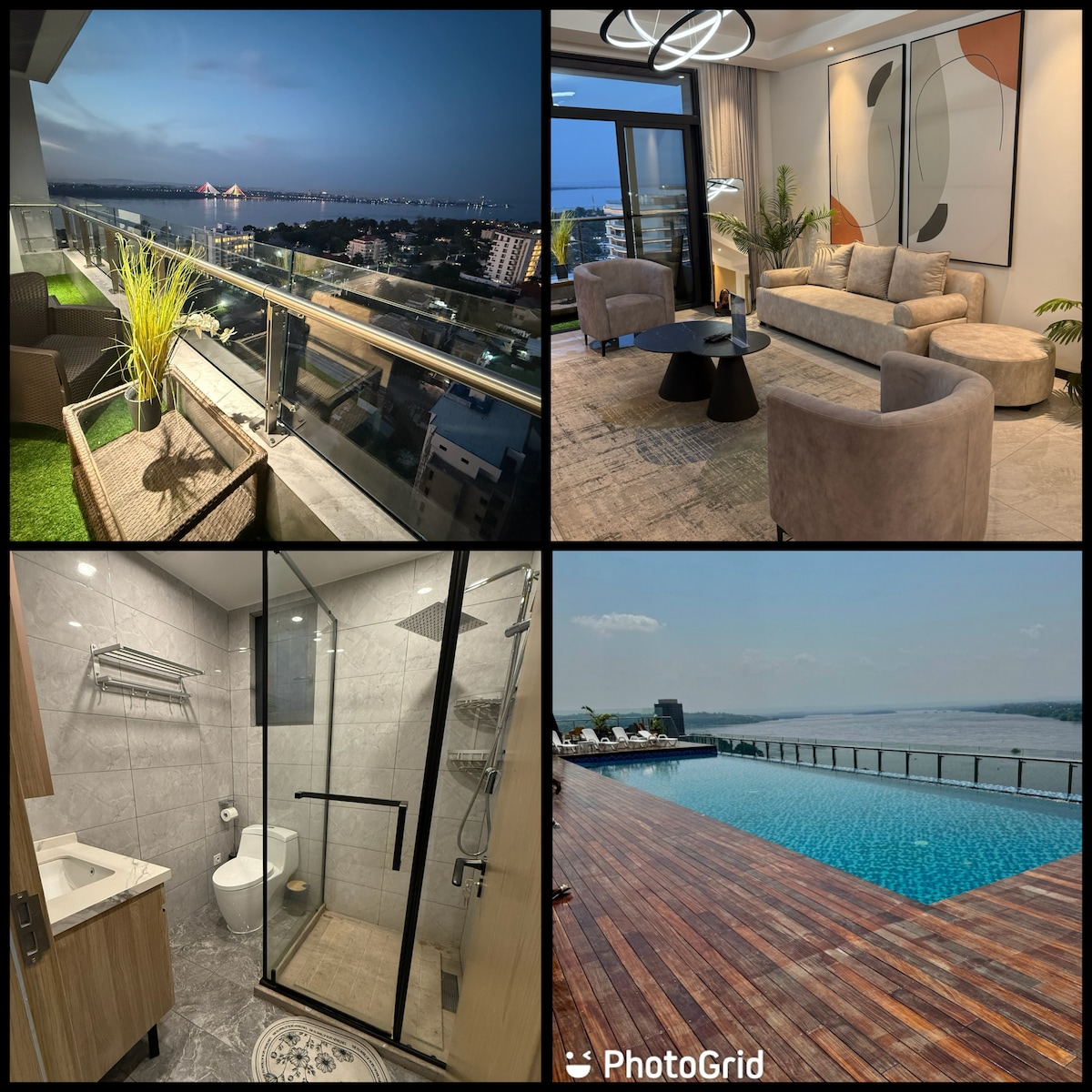 Ný og fín íbúð í hjarta La Gombe, í 2 mínútna fjarlægð frá aðallestarstöðinni. Njóttu framúrskarandi umhverfis með: ✔ Víðáttumikil þaksundlaug, magnað útsýni og töfrandi sólsetur ✔ Einka líkamsræktarstöð og setustofubar Fullbúin✔ íbúð (þráðlaust net, loftræsting, flatskjásjónvarp) Tilvalin ✔ staðsetning: bankar, veitingastaðir, matvöruverslanir í nágrenninu Fullkomið fyrir viðskiptaferðamenn og kröfuharða ferðamenn. Örugg bygging með forgangsþjónustu