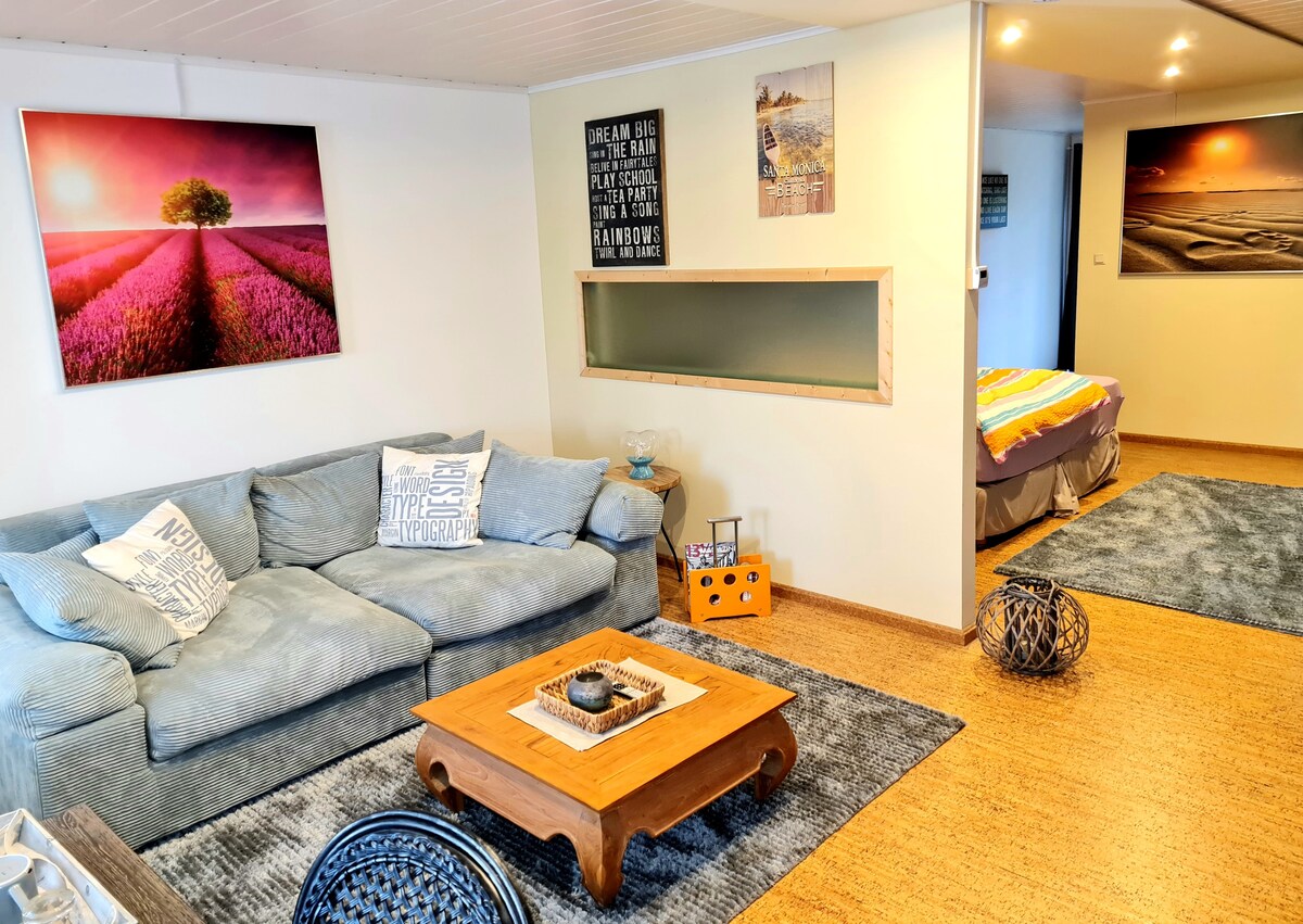 Slakaðu á og slakaðu á í þessu rólega og stílhreina rými. Miðsvæðis, í sveitinni en samt nálægt Bremen. Milli engja og hesthúsa. Aðeins 15 mínútur í miðbæ Bremen. Borgarferð ásamt mikilli náttúru og miklum gróðri.