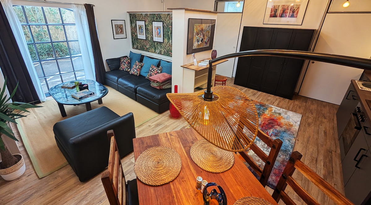 Wohnen im Atelier – Kunst nicht nur an den Wänden Besonderes Atelier-Apartment in ruhiger Zentrumslage von Worpswede. Wohnen mitten in der Kunst, modern und komfortabel – mit eigenem Eingang und Parkplatz. 500 Meter bis zum Zentrum Das Apartment war früher das Atelier des Künstlers :D@NNY – und genau das ist bis heute spürbar. Originale Kunstwerke, besondere Farben, Materialien und Details machen diese Unterkunft zu etwas Einzigartigem.