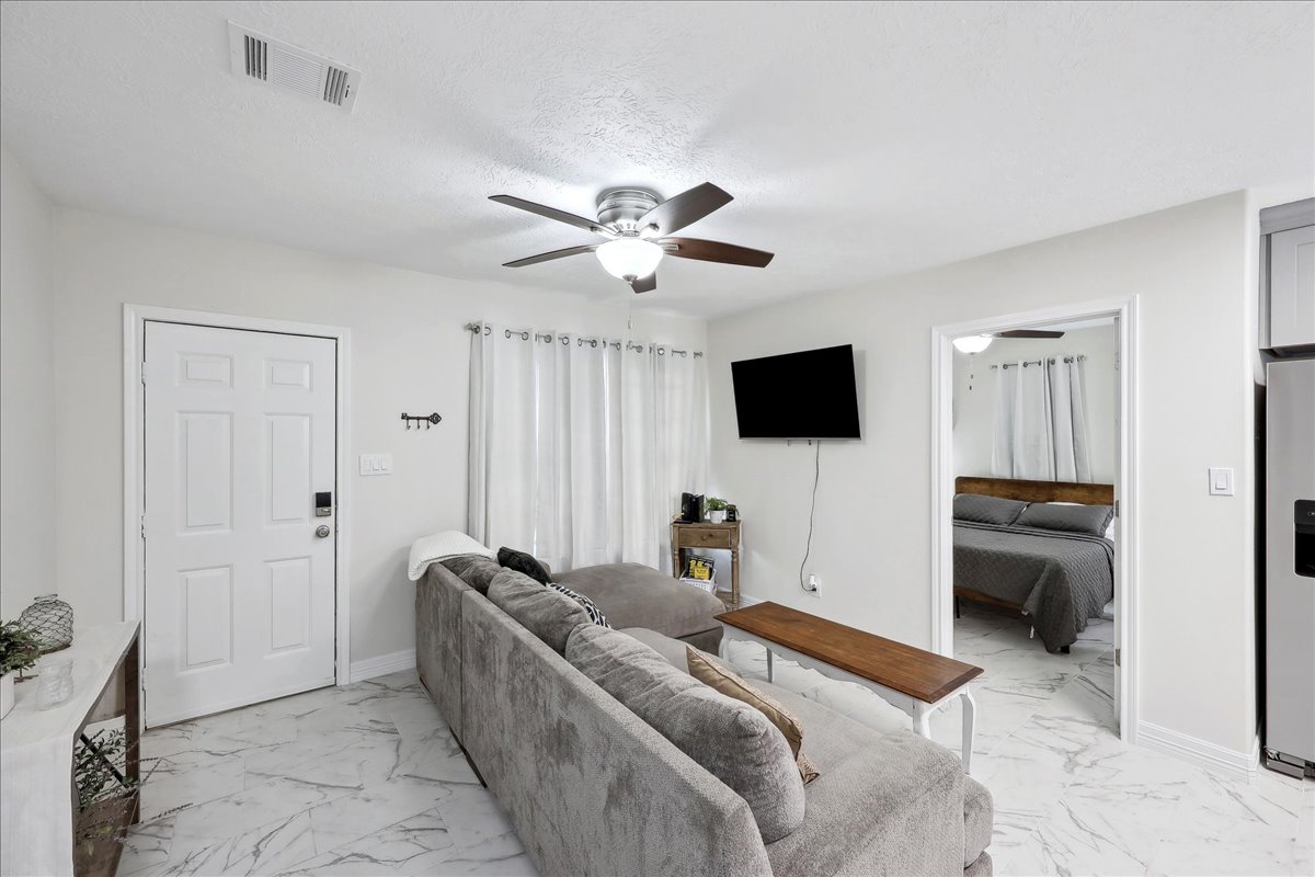 Njóttu glæsilegrar upplifunar á þessum miðlæga stað. Þægileg staðsetning við Texas Ave. (Þjóðvegur 73) nálægt veitingastöðum og matvöruverslun. Göngufæri við Dominos og Hamburger Depot. Yfirbyggðar verandir að framan og aftan með sætum. Öll ný ryðfrí tæki og nýjar Sealy dýnur. Harðviðargólfefni í öllu. Algjörlega endurbyggt árið 2023.